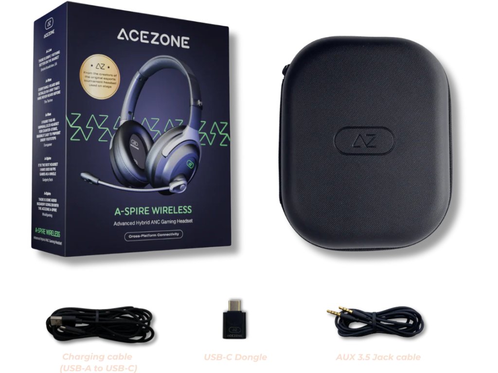 AceZone A-Spire Wireless jsou výkonná bezdrátová herní sluchátka navržená pro náročné herní seance i multimediální použití. Díky kombinaci bezdrátového připojení 2,4 GHz, Bluetooth 5.4 a kabelových rozhraní (USB-C i 3,5 mm jack) poskytují flexibilní možnosti připojení k PC, Macu, PlayStation, Nintendo Switch i mobilním zařízením. Pokročilé hybridní ANC efektivně snižuje okolní hluk a zajišťuje čistší herní zvukový projev bez rušivých signálů.