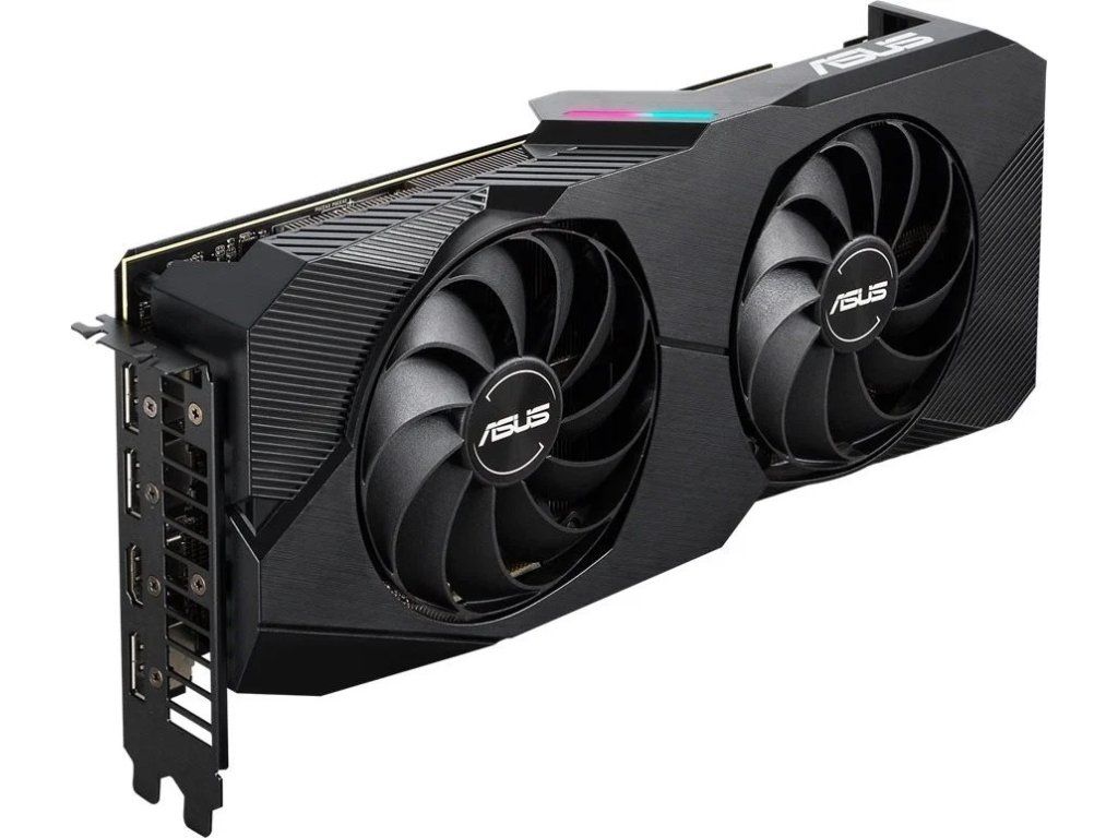 - Chlazení ASUS Dual: 2× ventilátor Axial-tech; 0dB režim pro tichý chod při nízké zátěži.