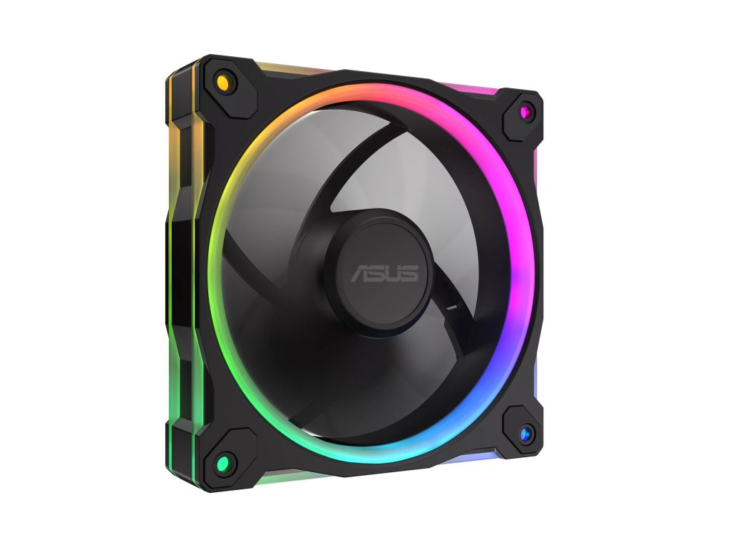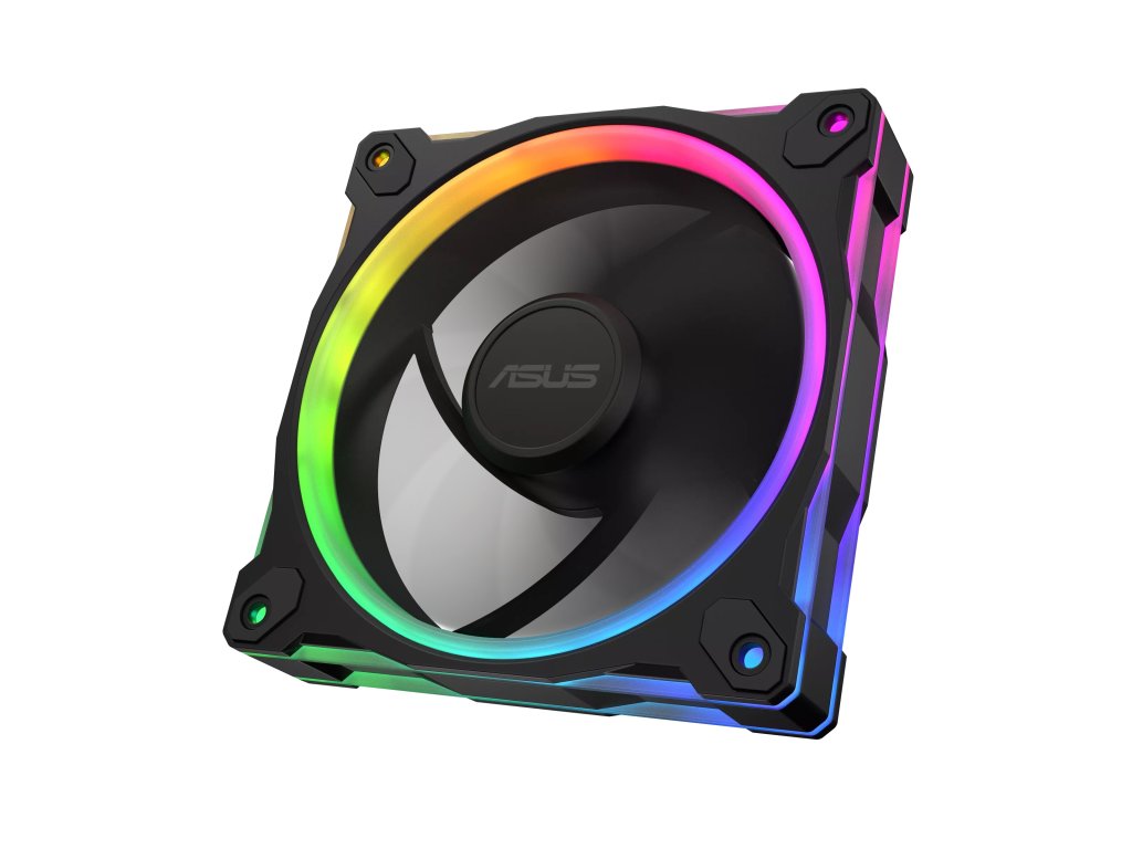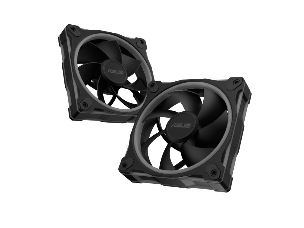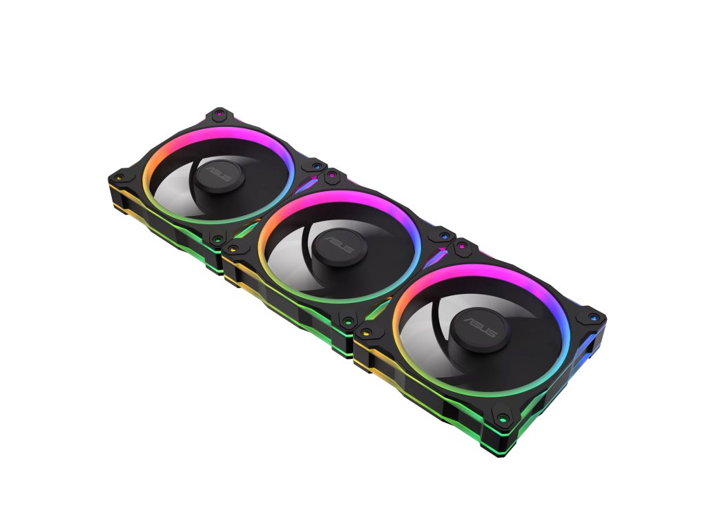 Ventilátory využívají hydro ložiska pro tichý a dlouhodobě spolehlivý provoz a podporují adresovatelné RGB podsvícení (5V 3-pin ARGB) kompatibilní s ASUS Aura Sync. Skládací sada obsahuje tři kusy ventilátorů s montážními šrouby a rozdvojovacím kabelem pro snadné zapojení.