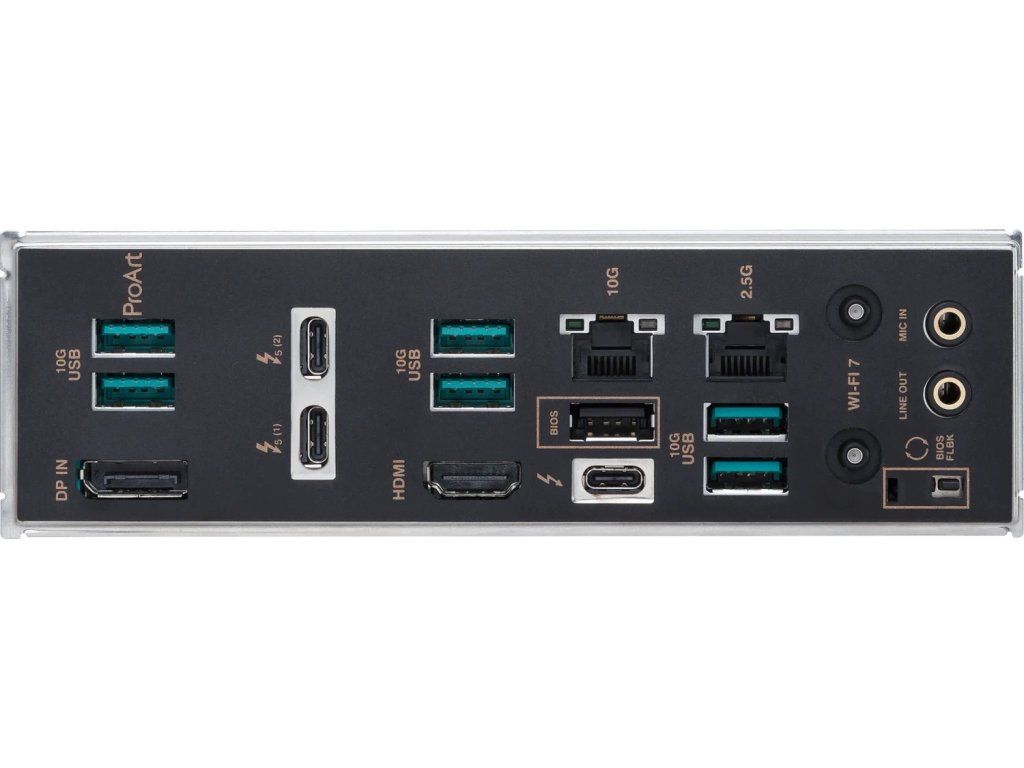 Pro profesionální nasazení je deska vybavena 10Gb Ethernetem a 2.5Gb Ethernetem, doplněná o Wi-Fi 7 s Bluetooth. Významnou výhodou je přítomnost Thunderbolt 5 a USB4 konektivity pro připojení rychlých periferií a monitorů.