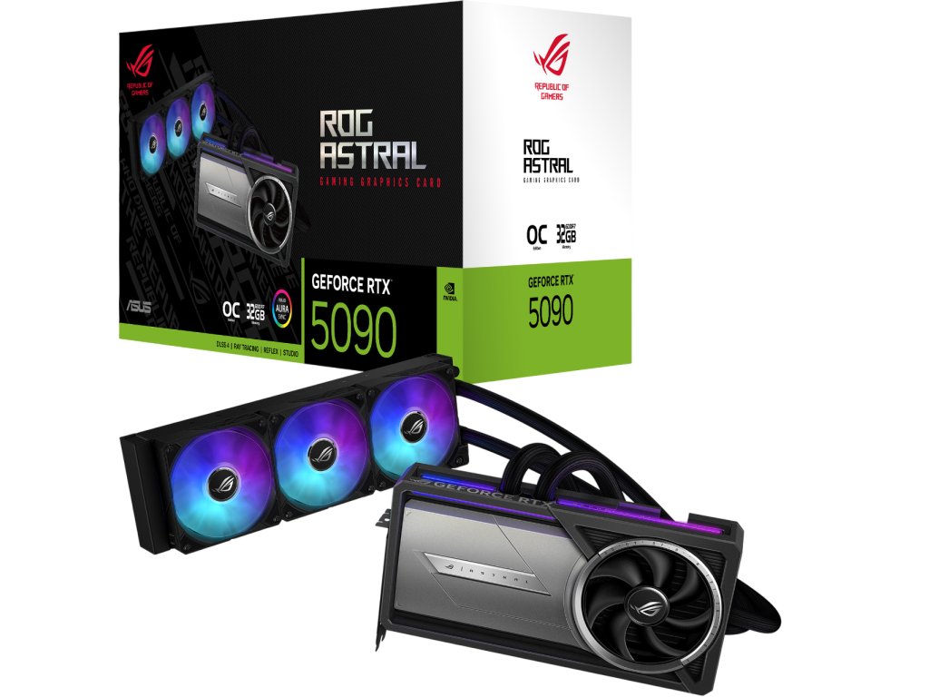 - Kapalinové chlazení ROG ASTRAL LC: Integrovaný AIO vodní okruh s radiátorem pro výrazně nižší teploty a stabilní provoz při dlouhodobé zátěži.