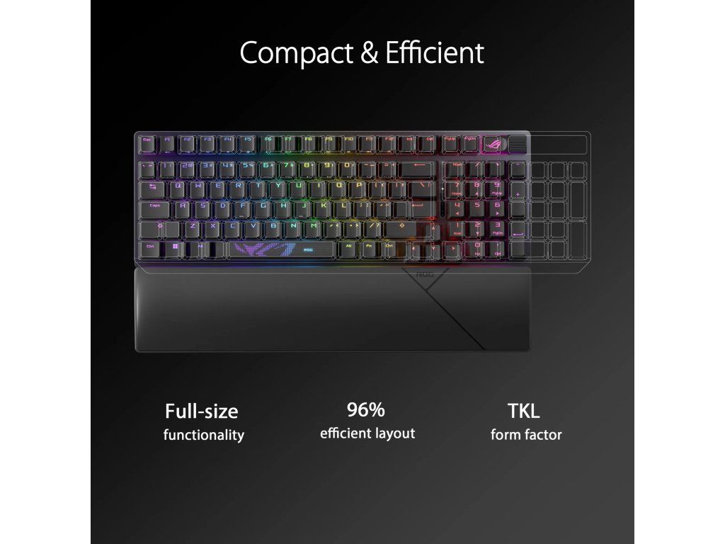 ASUS ROG FALCHION RX Low profile je kompaktní bezdrátová klávesnice s inovativními mechanickými spínači ROG RX Red, určená pro hráče...