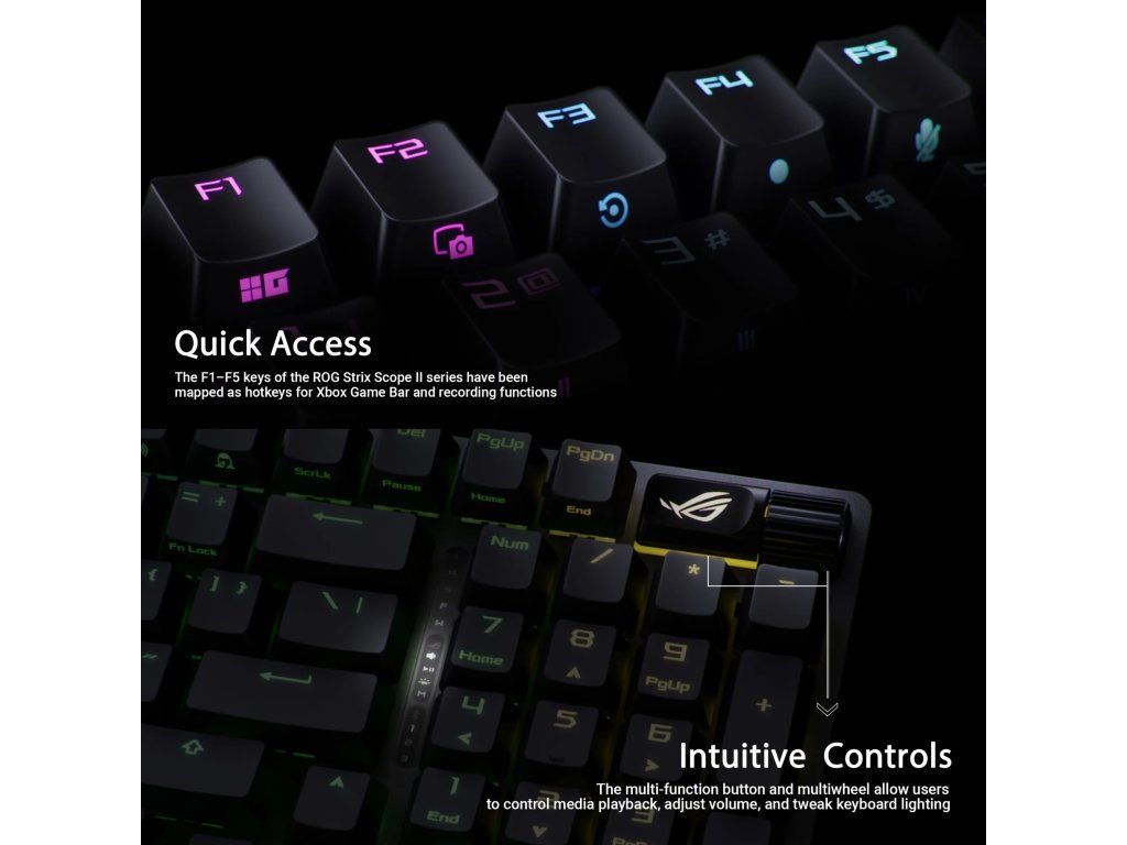 Odolné PBT doubleshot keycaps vydrží dlouhodobé používání bez opotřebení. Nechybí RGB Aura Sync podsvícení, multifunkční kolečko a pokročilé možnosti nastavení v Armoury Crate.