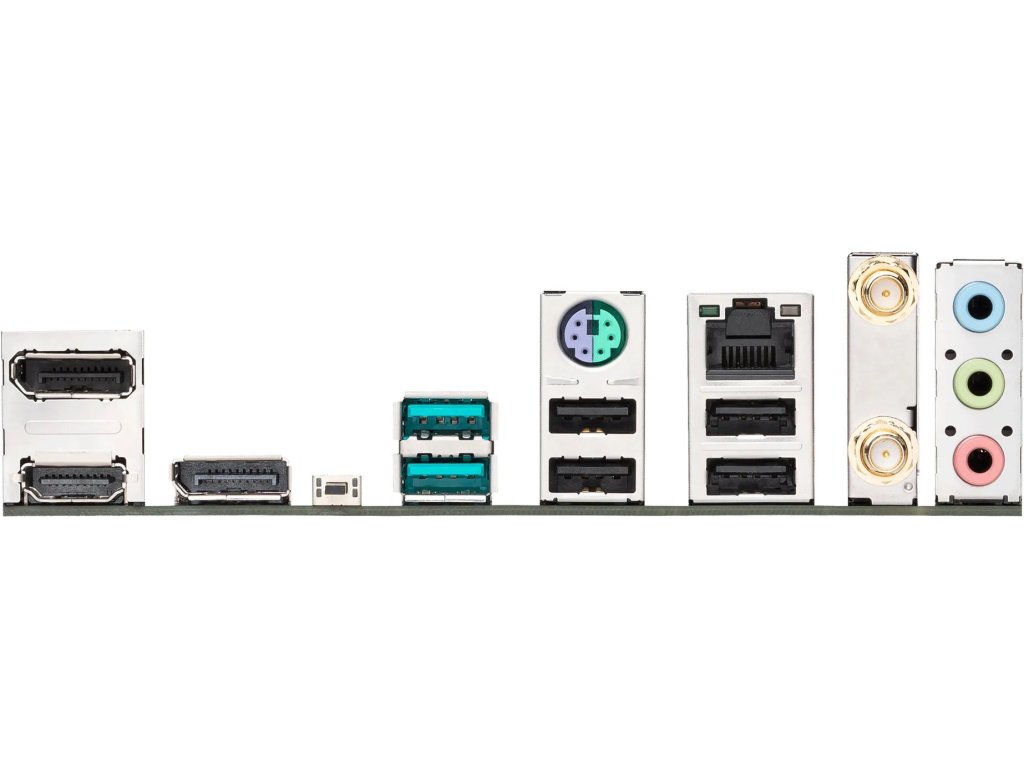 Síťové připojení zajišťuje 2.5Gb Ethernet a integrované Wi-Fi. Zadní panel nabízí moderní konektivitu včetně USB portů a obrazové výstupy HDMI a DisplayPort pro využití integrovaného grafického jádra procesoru.