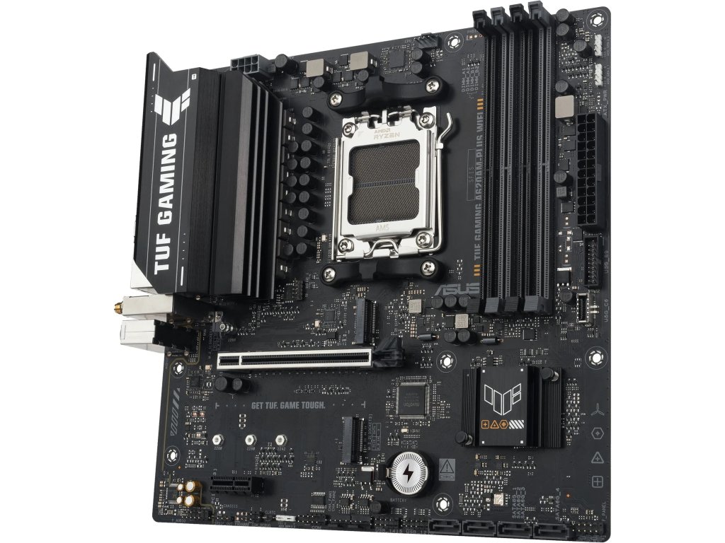 ASUS TUF GAMING A620M-PLUS WIFI je základní deska formátu micro-ATX postavená na čipsetu AMD A620, navržená pro moderní procesory AMD Ryzen s paticí AM5. Řada TUF GAMING klade důraz na dlouhodobou stabilitu, odolné komponenty a spolehlivý provoz.