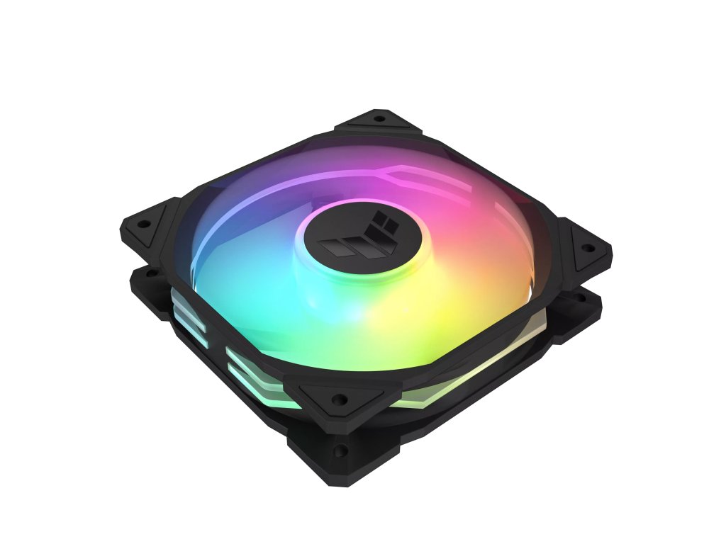 Každý ventilátor podporuje adresovatelné RGB podsvícení (5V 3-pin ARGB) kompatibilní s ASUS Aura Sync, takže lze snadno synchronizovat osvětlení s ostatními komponenty. Černé provedení s decentním TUF designem dokonale zapadne do moderních herních sestav.