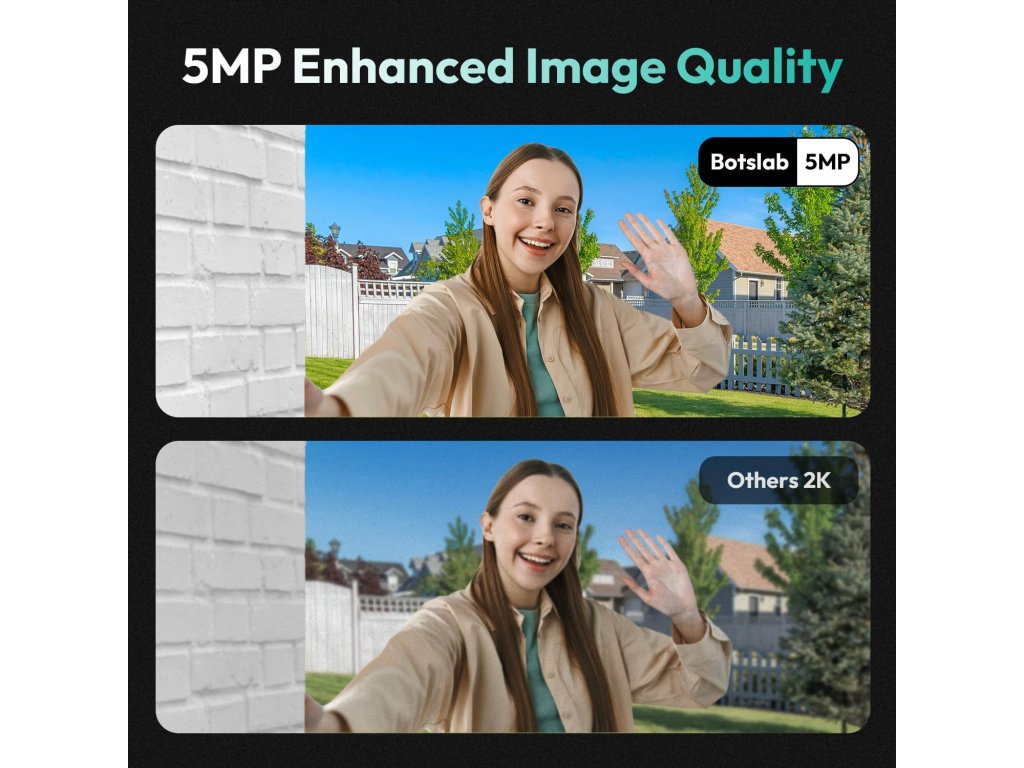 Botslab Video Doorbell 2 Pro (R811) je moderní chytrý zvonek s vysokým rozlišením 5 MP a extra širokým 180° vertikálním záběrem. Umožňuje vám detailní sledování prostoru před vašimi dveřmi, včetně detekce osob, pohybu a obousměrné komunikace.