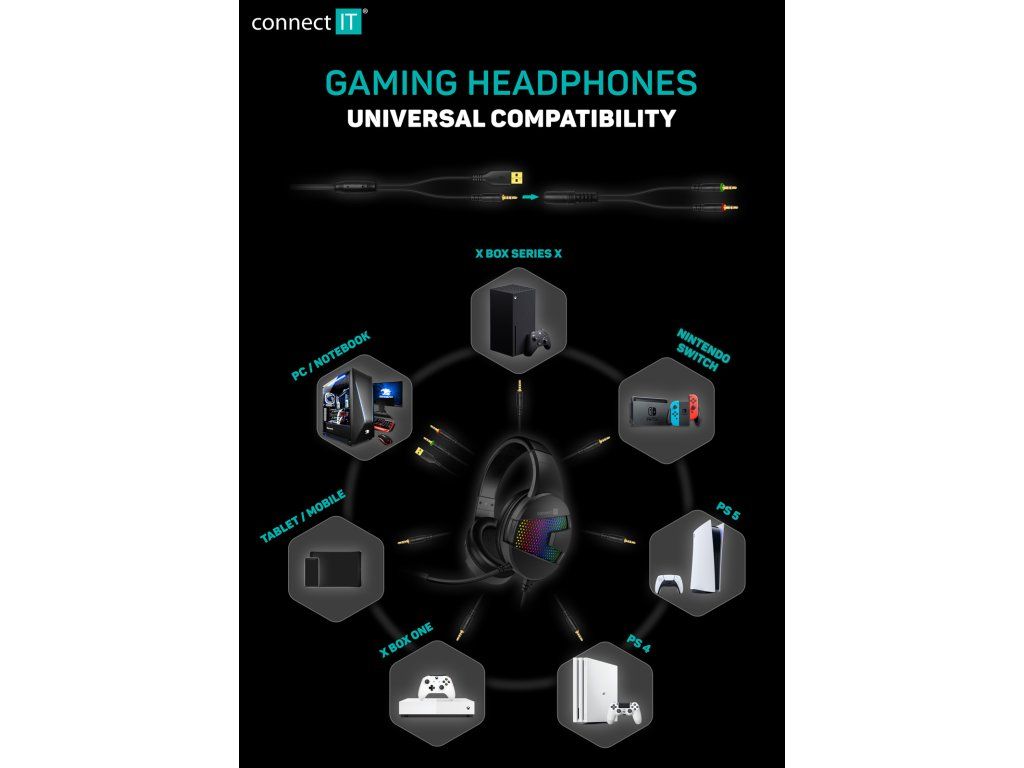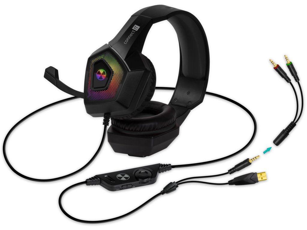 CONNECT IT NEO CHP-3595-BK Black jsou herní sluchátka s RGB podsvícením, 50mm měniči a sklápěcím mikrofonem, která nabízí silný zvuk a...