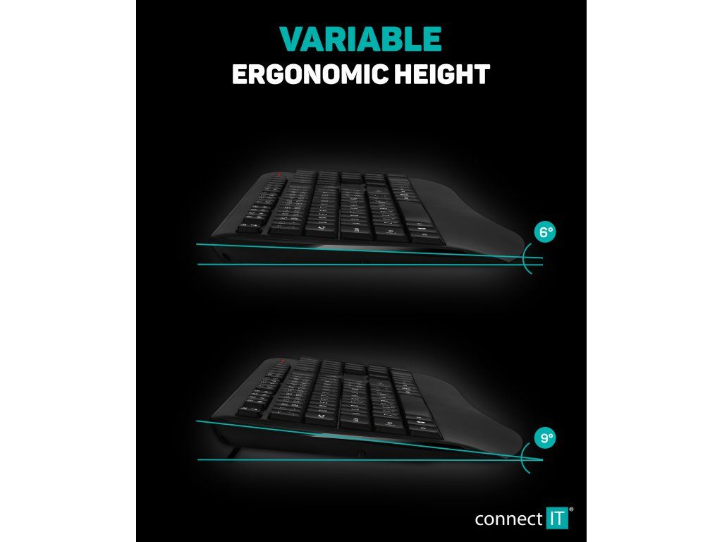 CONNECT IT FOR HEALTH Wireless Combo CZ/SK je ergonomický bezdrátový set klávesnice a vertikální myši s TriMode připojením (Bluetooth +...