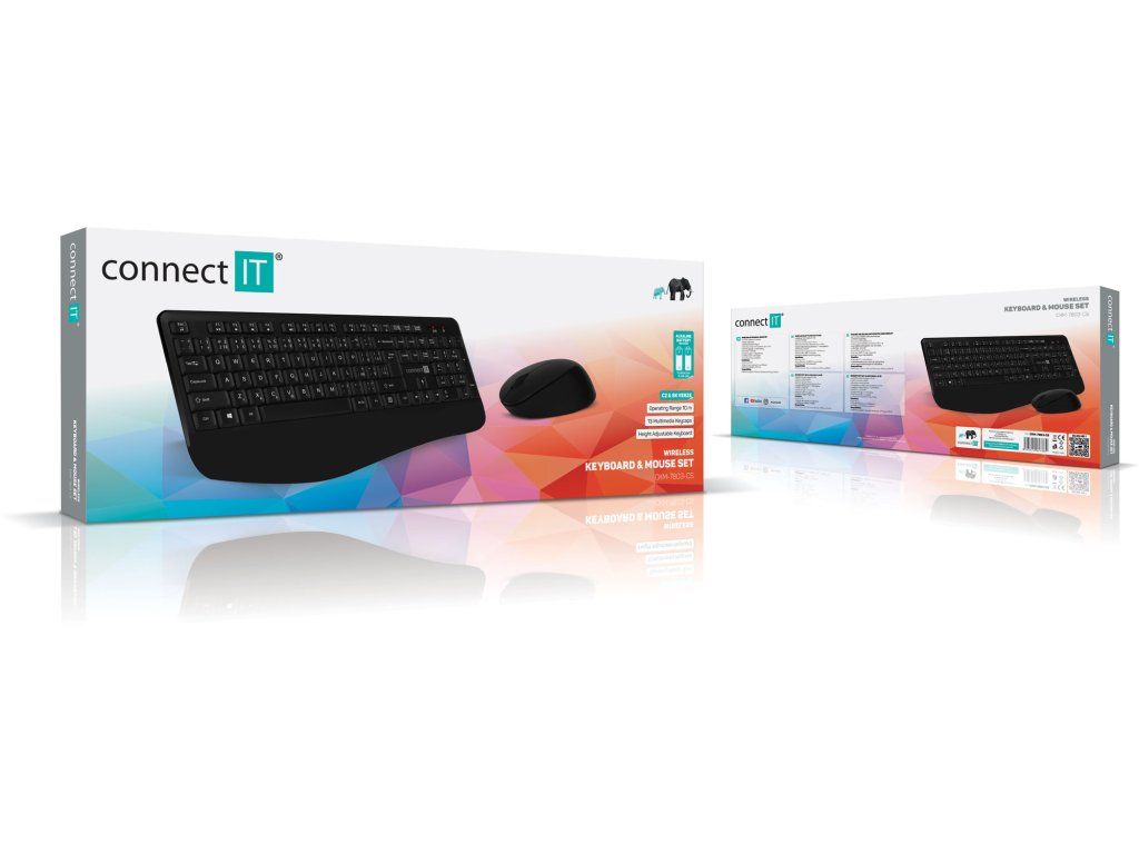 CONNECT IT CI-185 Multimedia CZ/SK je bezdrátový set klávesnice a myši s 2.4 GHz připojením, 10 multimediálními klávesami a ergonomickou...