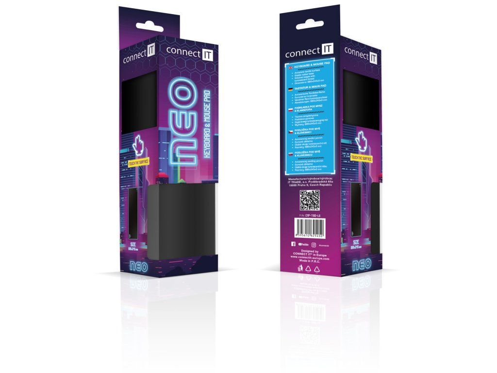 CONNECT IT NEO Gaming Series Large je rozměrná herní podložka navržená pro maximální komfort při hraní i práci. Díky své velikosti poskytuje dostatek prostoru nejen pro myš, ale i klávesnici.