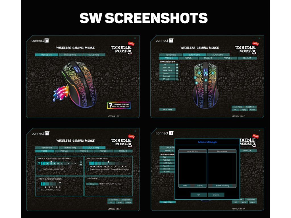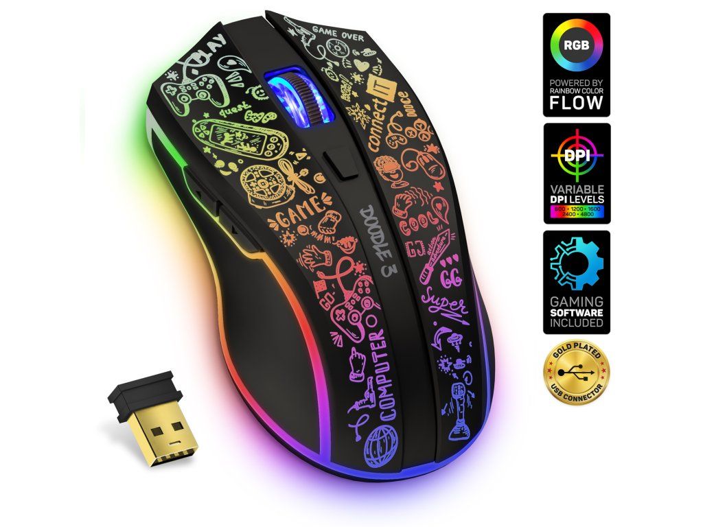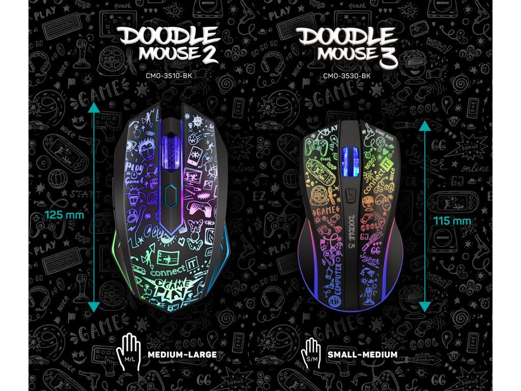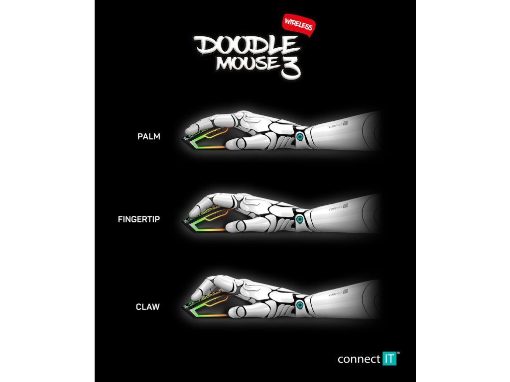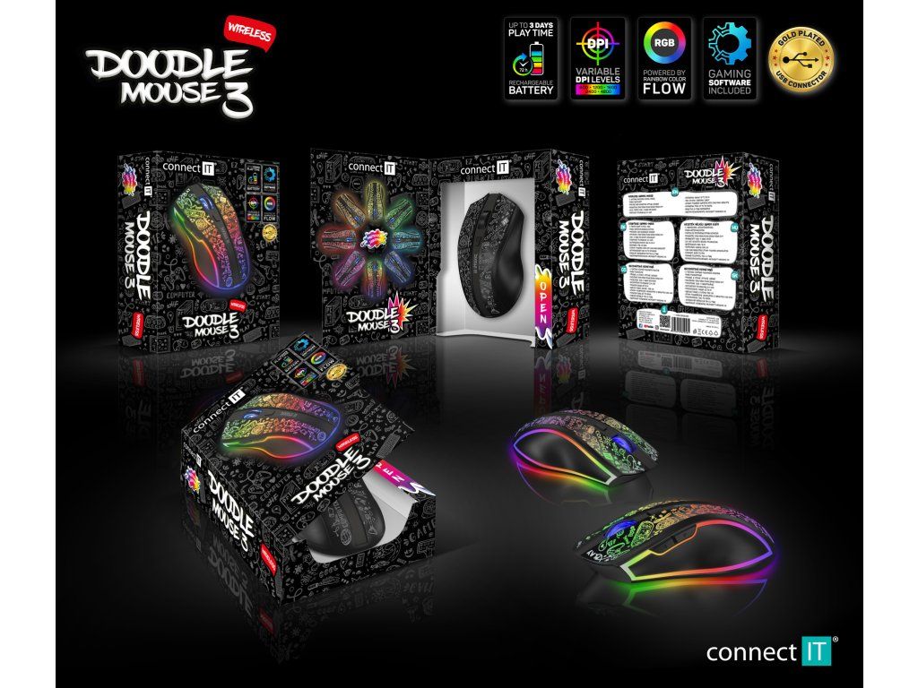 CONNECT IT DOODLE 3 je ideální volbou pro hráče, kteří chtějí moderní herní myš s RGB efekty, solidním výkonem a pohodlným ovládáním.