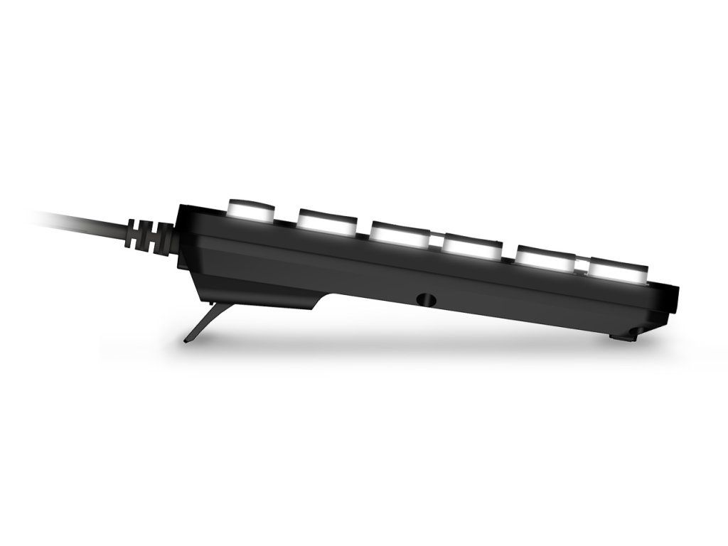 Díky velkému fontu kláves a podsvícení jsou jednotlivé znaky dobře čitelné i při slabém osvětlení. Klávesnice nabízí klasické full size rozložení s CZ/SK layoutem včetně numerické části.