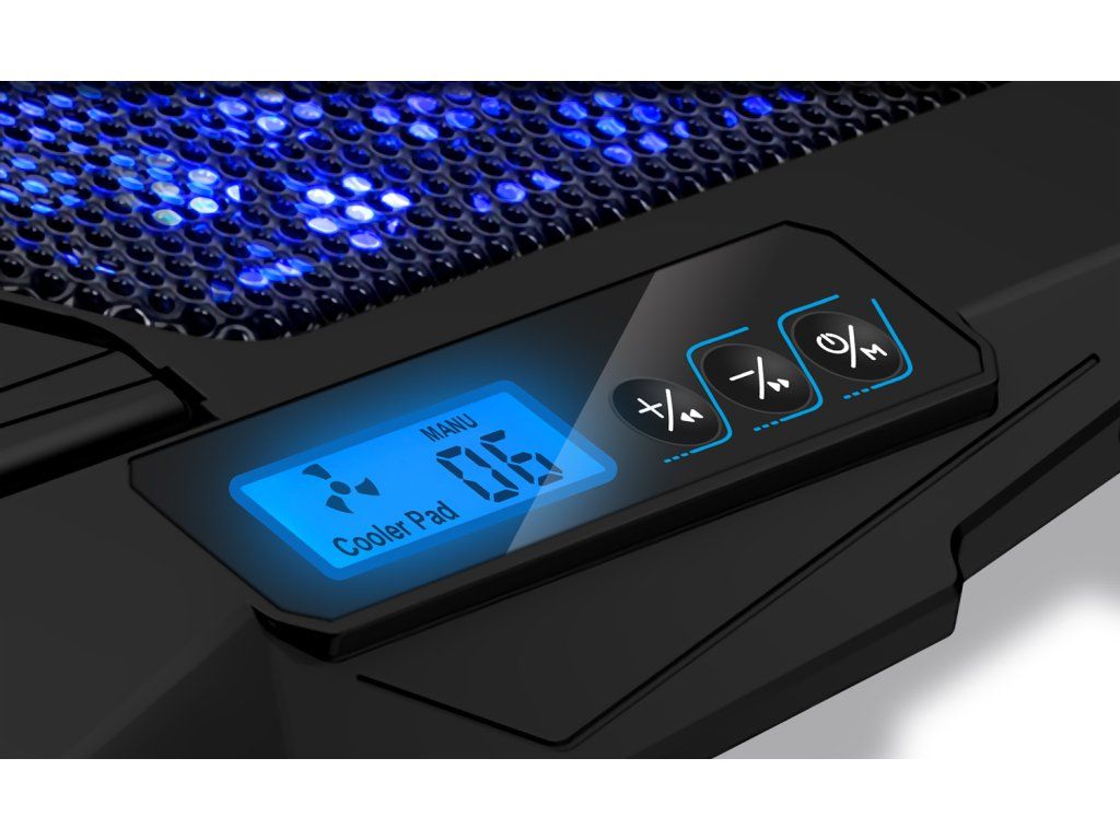 Podložka je vybavena 4 ventilátory (2 velké a 2 menší), které zajišťují efektivní proudění vzduchu a ochlazují jak ventilační otvory, tak i samotné tělo notebooku.