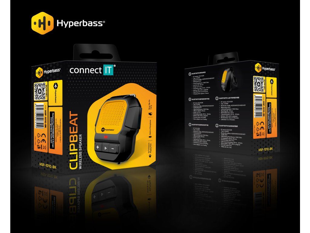 CONNECT IT Hyperbass ClipBEAT Black-Yellow je kompaktní Bluetooth reproduktor navržený pro aktivní životní styl. Díky praktickému klipu ho snadno připnete na batoh, oblečení nebo kolo a můžete mít hudbu stále u sebe.
