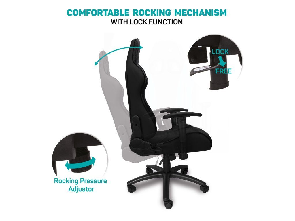 Disponuje houpací mechanikou s nastavitelnou tuhostí podle hmotnosti uživatele a plně nastavitelným opěradlem až do 180°, takže si můžete křeslo přizpůsobit přesně podle svých potřeb.