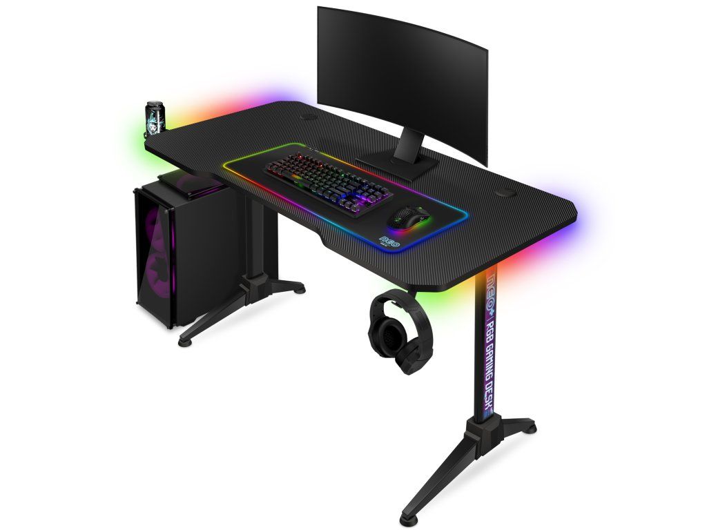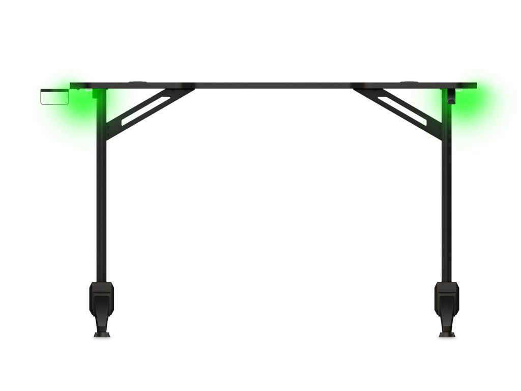 Stůl je vybaven RGB LED podsvícením po stranách s více světelnými režimy a možností nastavení barev, což dodává sestavě výrazný herní vzhled.