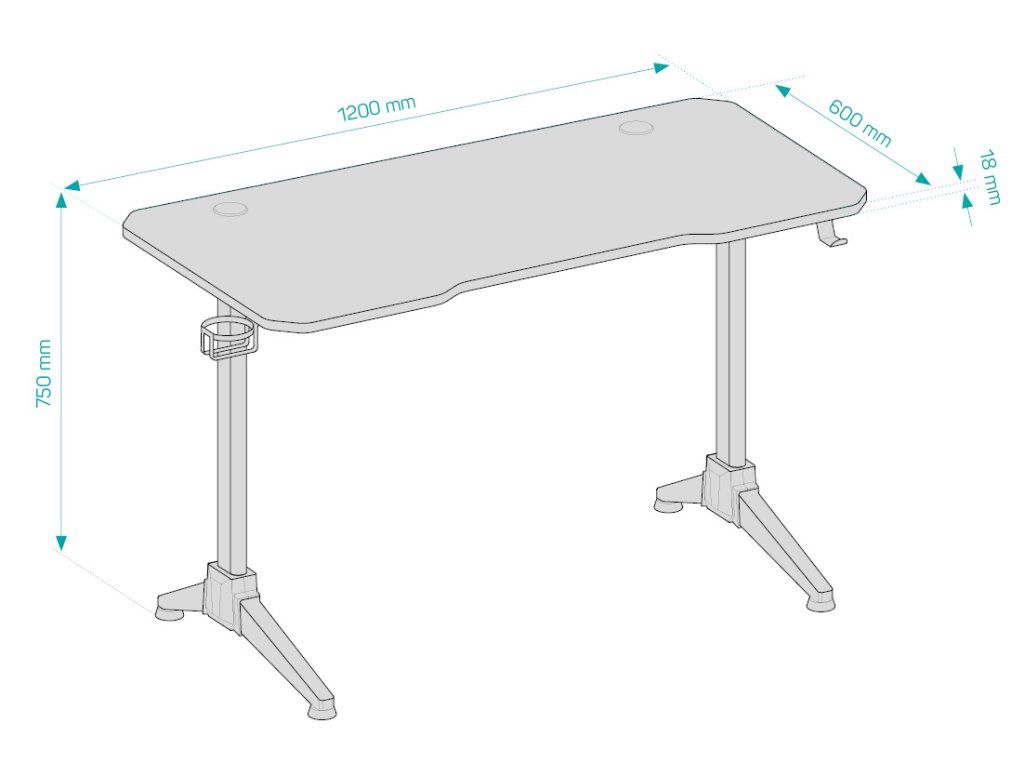 - Funkce: držák na sluchátka, držák na nápoj, vedení kabelů