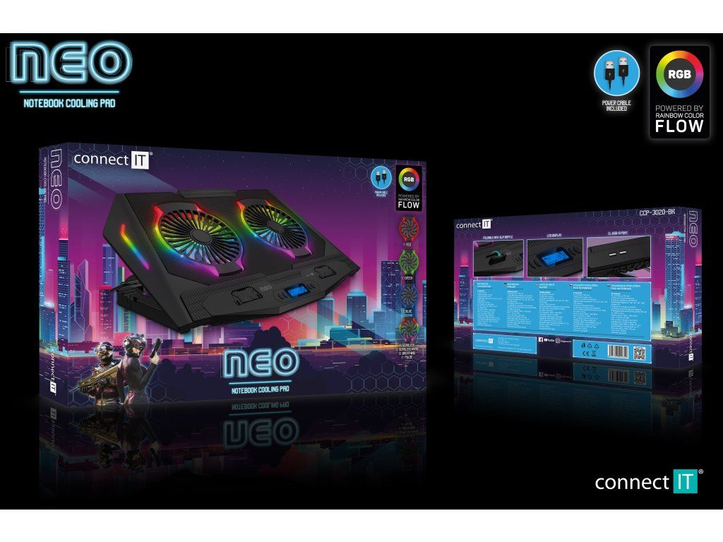 CONNECT IT NEO RGB je pokročilá chladicí podložka navržená pro efektivní odvod tepla a maximální komfort při práci i hraní. Díky robustní konstrukci a výkonným ventilátorům pomáhá udržet notebook v optimální teplotě i při vysoké zátěži.