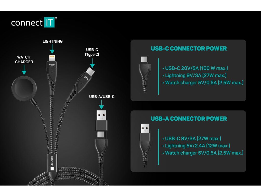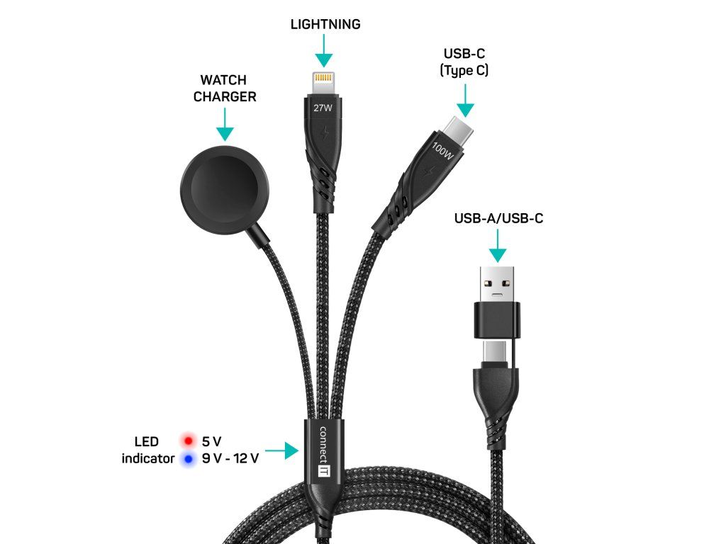 CONNECT IT Wirez 6in1 je ideální řešení pro uživatele, kteří chtějí jeden kabel pro všechna zařízení bez nutnosti nosit více různých kabelů.
