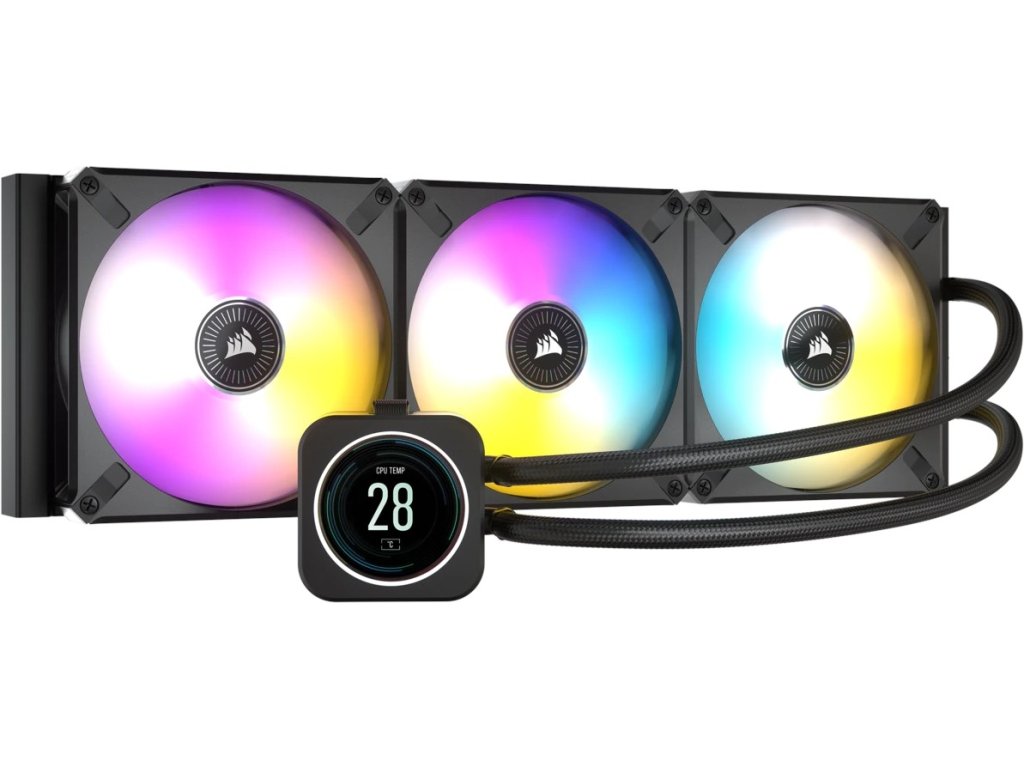 Corsair iCUE H170i ELITE LCD Display 420 mm – AiO vodní chladič přináší špičkové chlazení procesoru do vašeho PC i elegantním způsobem. Díky 2,1" IPS LCD displeji s rozlišením 480×480 pixelů si můžete zobrazovat vlastní obrázky nebo animace, MMS měření teploty a další.