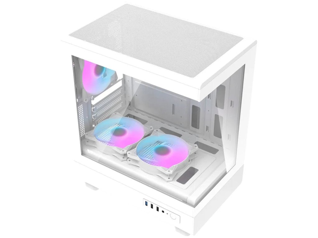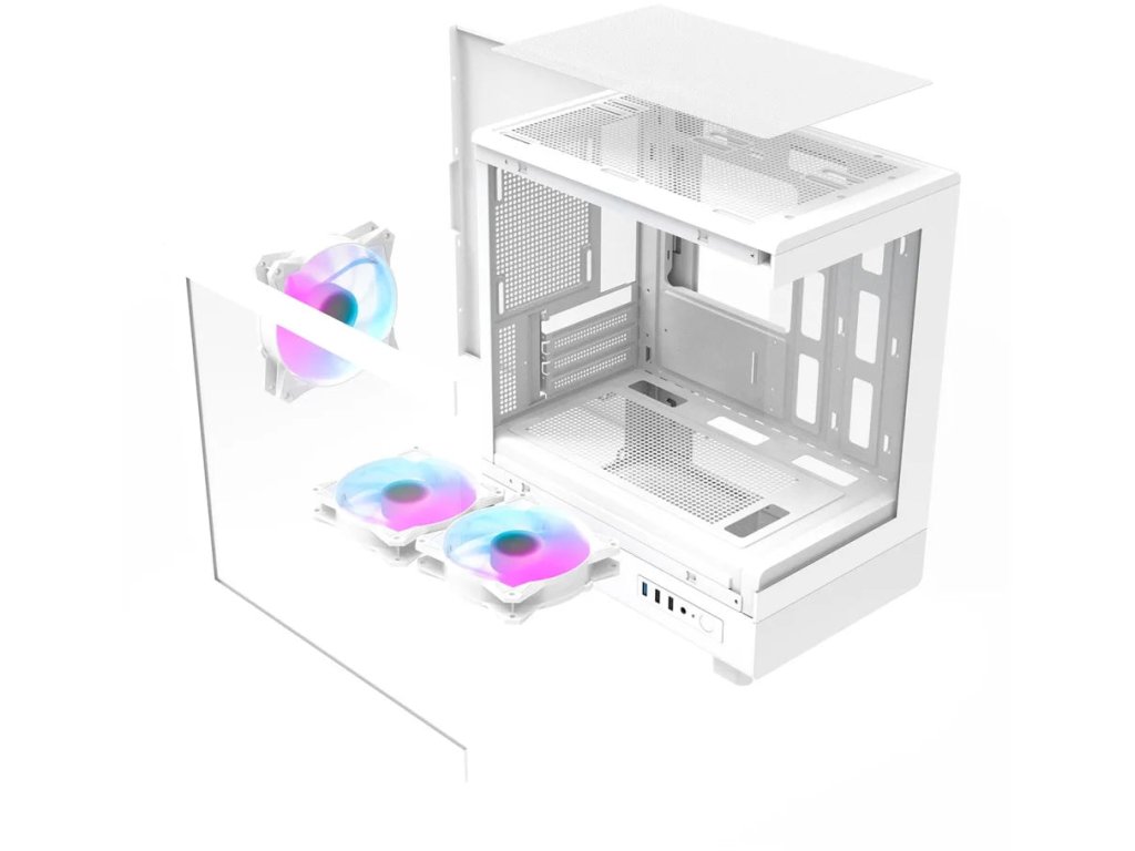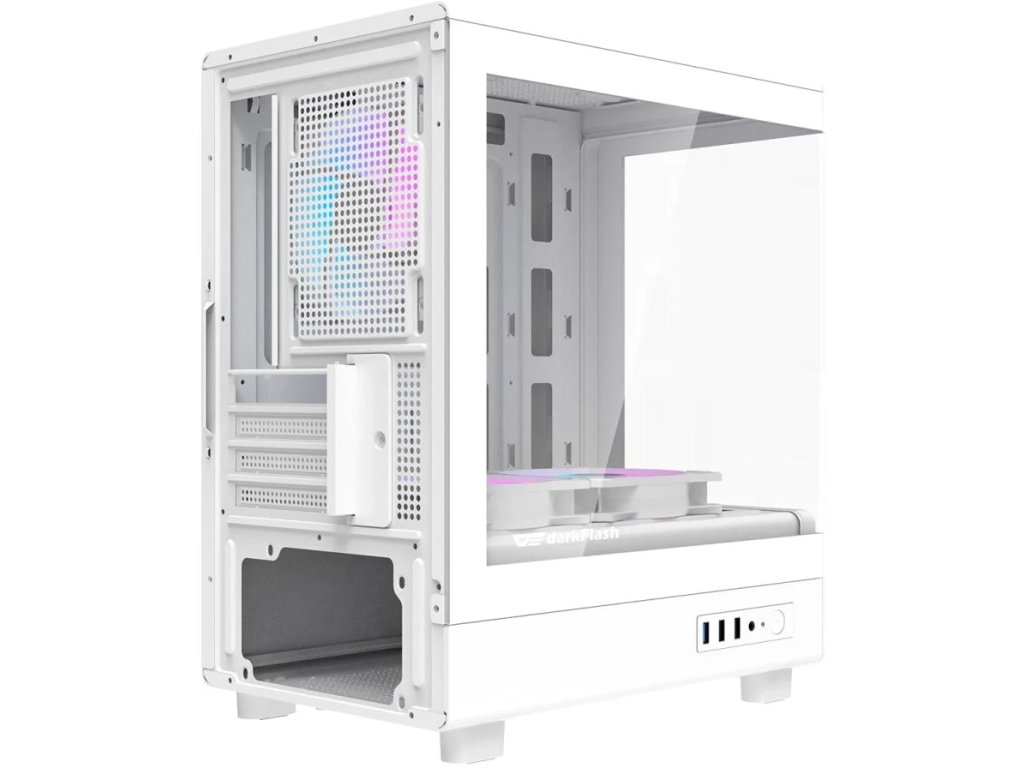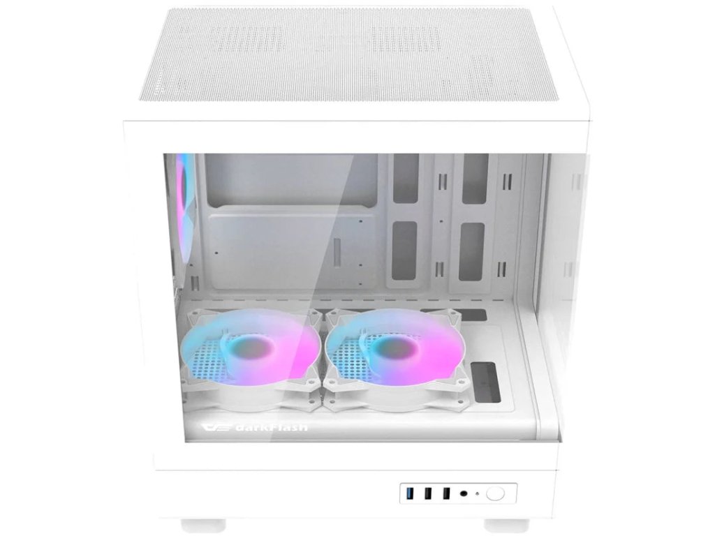 Darkflash DB330M je kompaktní a stylová skříň určená pro výkonné konfigurace nejen pro kancelářskou práci. Je kompatibilní se základními deskami M-ATX a ITX a podporuje grafické karty o délce až 305 mm. Díky svým kompaktním rozměrům 400 x 218 x 333 mm bude ideální pro místa, kde je málo místa, aniž by byla obětována funkčnost. Součástí sady jsou také tři ventilátory ARGB.