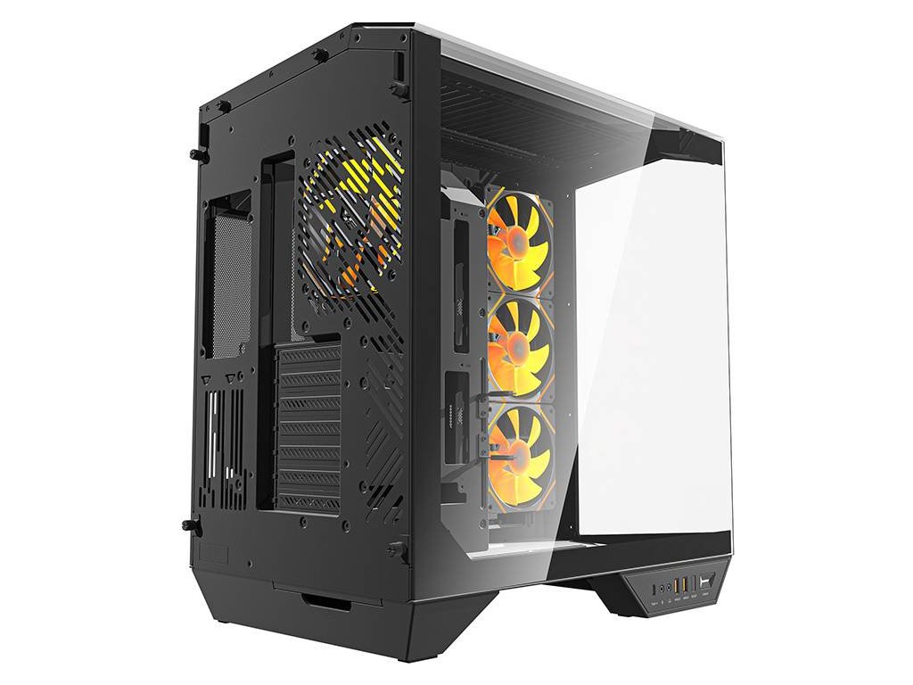 Skříň DY470 nabízí mimořádně prostorný vnitřní prostor, který umožňuje snadné rozšíření a instalaci komponent podle vašeho výběru. Umožňuje instalovat grafickou kartu o výšce až 410 mm (horizontálně) nebo až 390 mm (vertikálně, s volitelným kabelem PCIE4.0), stejně jako chladič procesoru o výšce až 172 mm a napájecí zdroj o výšce až 200 mm. Můžete také umístit dva pevné disky nebo jeden SSD, takže snadno poskytnete prostor pro své fotografie, videa, hry nebo dokumenty.