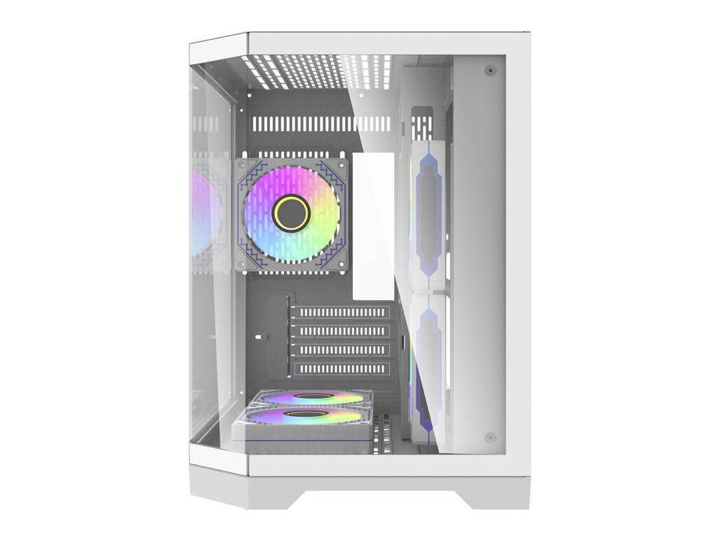 DarkFlash DY470 – moderní bílá skříň formátu ATX s bočnicí z tvrzeného skla, čtyřmi ARGB ventilátory a držákem GPU. Nabízí podporu...