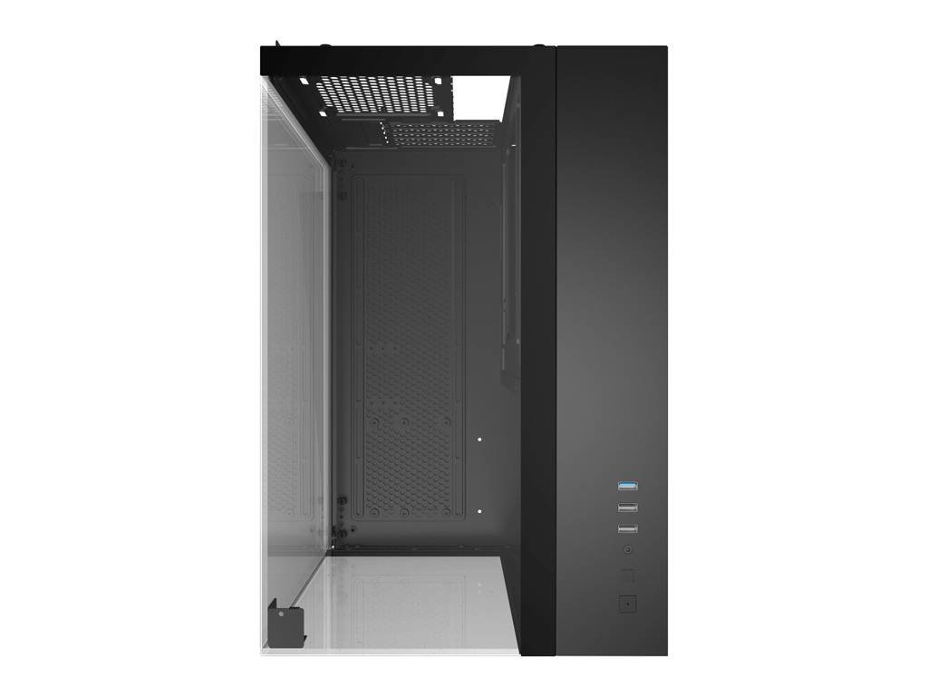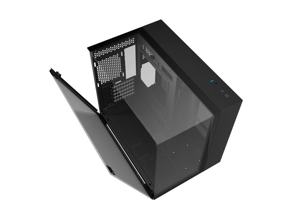 Skříň se vyznačuje až třemi průhlednými panely z tvrzeného skla, které vám umožní snadno si prohlédnout každý detail vaší sestavy. Průhledný design nejen zvyšuje estetiku vašich komponent, ale také vám umožní snadno zkontrolovat stav vašich komponent a účinnost chlazení. Boční panel se šrouby na palec usnadňuje rychlý přístup do vnitřku skříně. Od této chvíle bude váš pracovní prostor působit futuristickým dojmem.