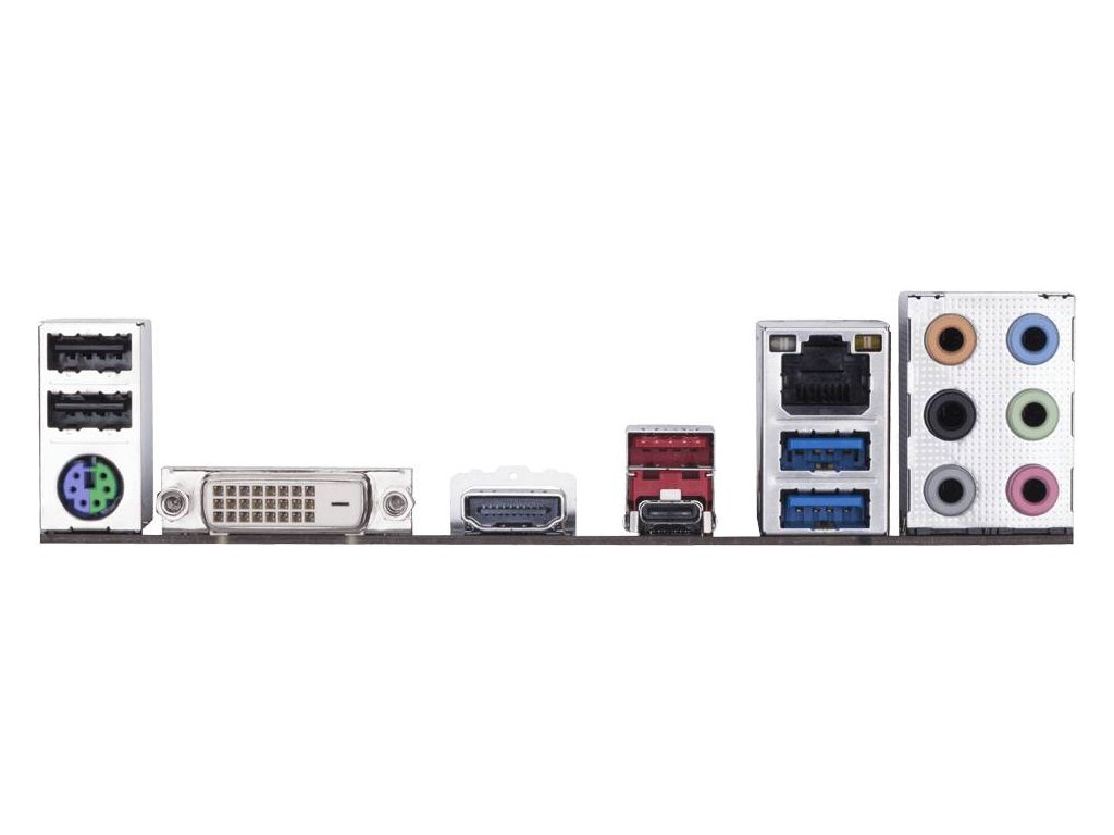 Nechybí obrazové výstupy HDMI, DVI-D a VGA (při použití procesoru s grafikou), moderní konektivita zahrnuje USB 3.1 Gen1, gigabitový LAN port (Intel) a integrovaný 8kanálový zvuk (Realtek ALC892). Deska má zesílené napájení, ochranné prvky a intuitivní UEFI BIOS pro snadné nastavení.