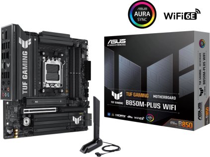 ASUS TUF GAMING B850M-PLUS WIFI je robustní microATX základní deska pro Ryzen 7000 a 8000 procesory, s podporou DDR5 až 7600 MHz, PCIe...