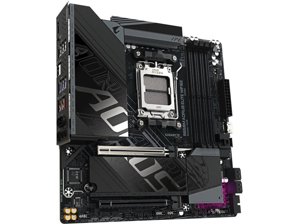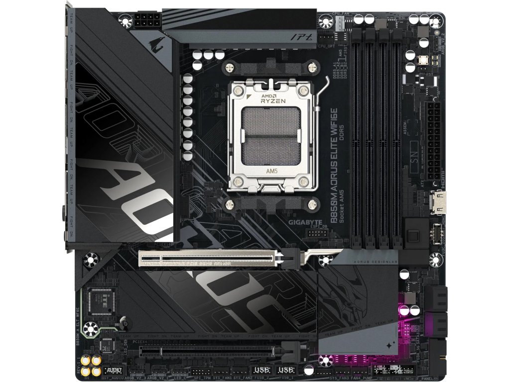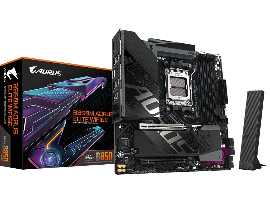 GIGABYTE B850M AORUS ELITE WIFI6E je výkonná microATX základní deska s čipsetem AMD B850 a paticí AM5, navržená pro nejnovější procesory AMD Ryzen řady 8000 a 7000. Díky podpoře DDR5 pamětí (až 192 GB, 8000 MHz OC), PCIe 5.0 pro grafickou kartu i M.2 SSD a silné napájecí kaskádě s 12+2+2 fázemi je ideální volbou pro výkonné PC.