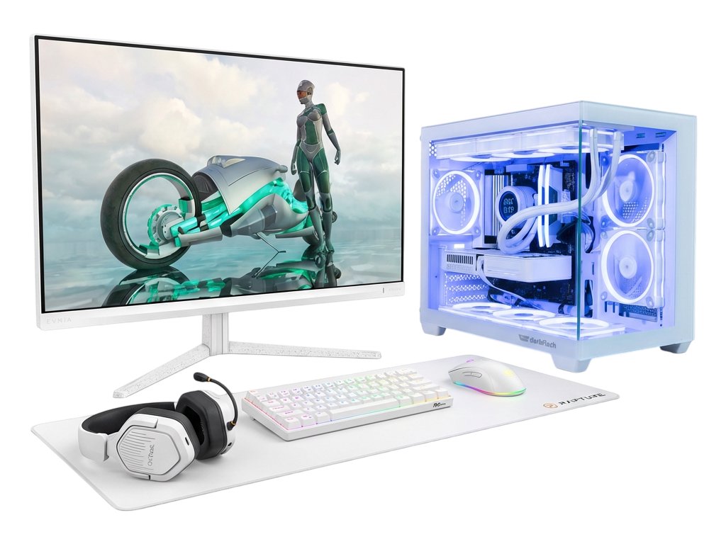 Kompletní herní SET – výkon a styl bez kompromisů. Kromě samotného počítače obsahuje tento set také monitor a herní příslušenství v jednotném bílém designu. Nemusíte řešit žádné další dokupování – vše potřebné máte připravené v jednom balení.