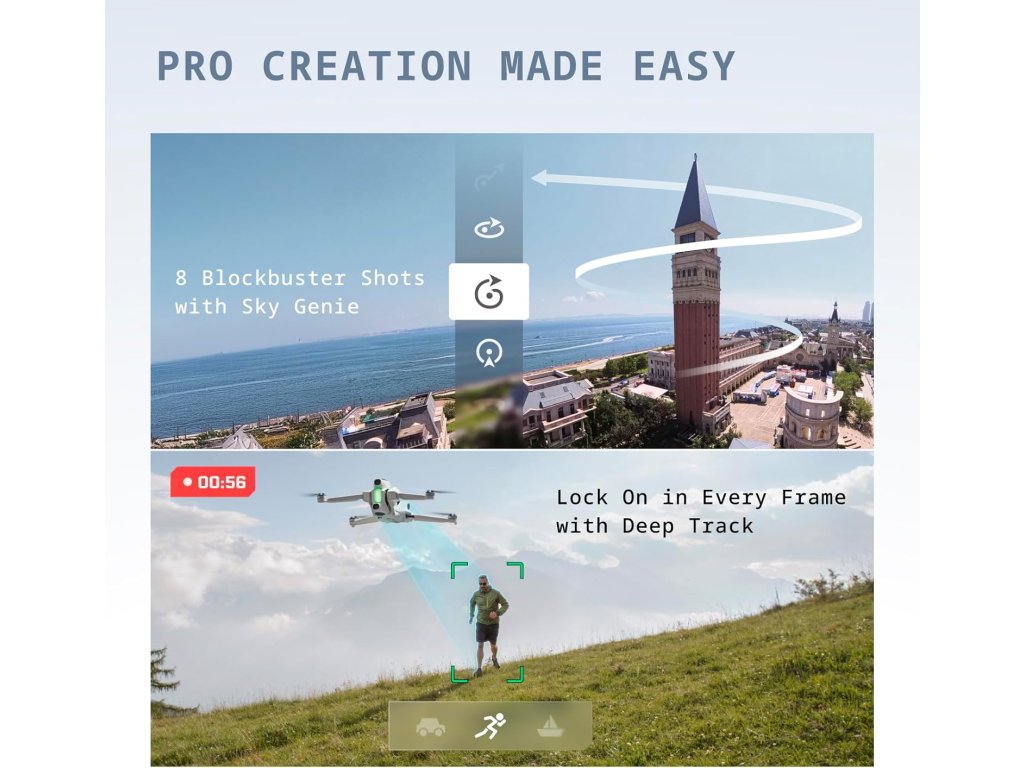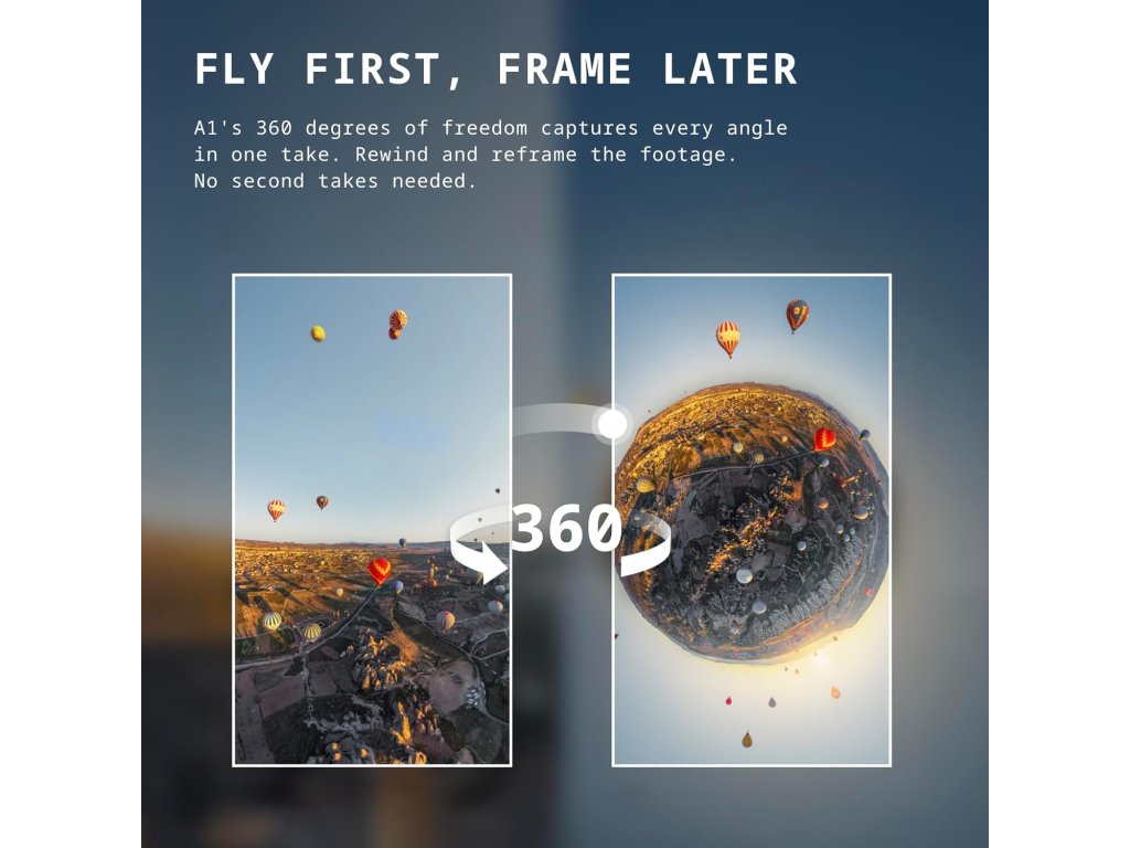 Díky 360° záznamu a ověřeným letovým parametrům je Antigravity A1 vhodný pro tvůrce, kteří chtějí natočit jeden let a z něj následně vytěžit více různých záběrů pro širokoúhlé i vertikální formáty.