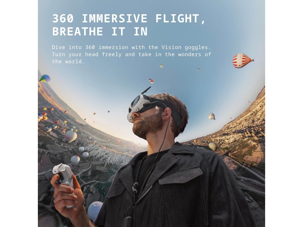 - Obsah balení: nabíjecí hub, baterie Vision, poutko na ovladač, hlavový pás, polstrování, krytky čoček, poutko na baterii, kabel USB-C – DC, nabíjecí kabel USB-C, šroubovák, rámeček pro korekční čočky, čisticí hadřík na čočky