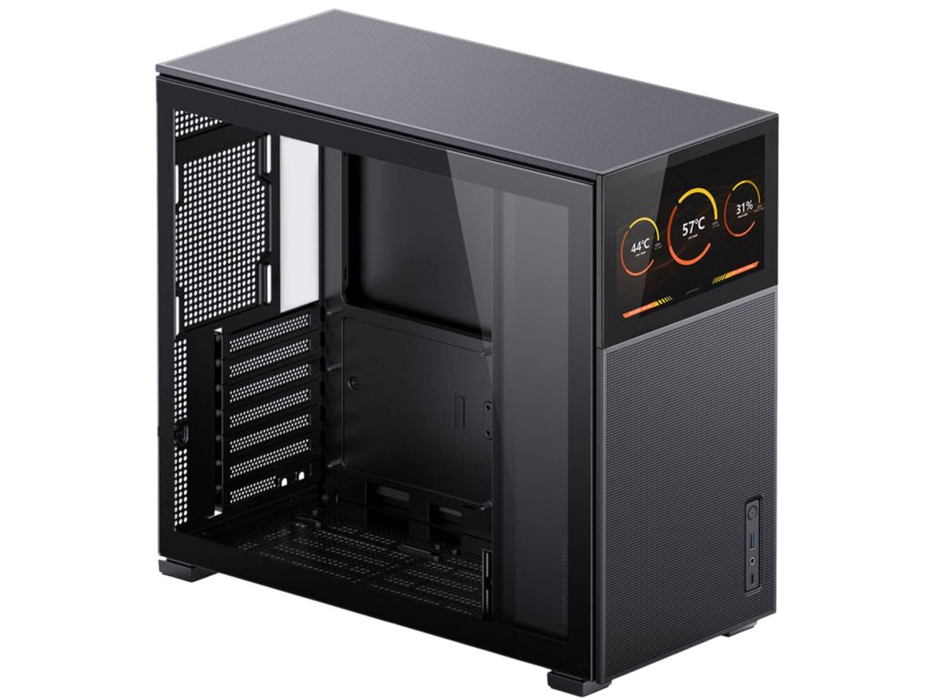 Počítačová skříň Jonsbo D41 MESH Screen v černém provedení zaujme jak funkčně, tak vizuálně. Přední mesh panel zajišťuje výborný průtok vzduchu, zatímco boční tvrzené sklo a 8" LCD displej umožňují sledovat monitoring systému nebo vlastní obsah. Skříň podporuje základní desky ATX, Micro-ATX a komponenty vyšší třídy.