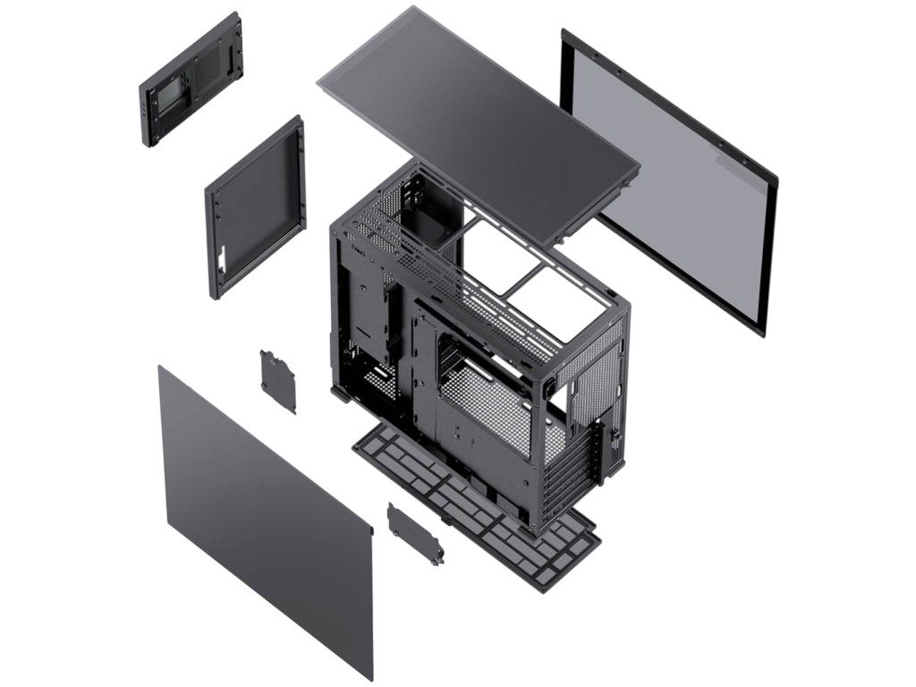 Vnitřní prostor pojme grafickou kartu o délce až 400 mm, chladič procesoru s výškou do 168 mm a napájecí zdroj délky až 220 mm. Skříň nabízí montáž 2× 2,5" SSD a 1× 3,5" HDD.