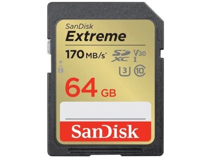 SanDisk SDXC 64GB Extreme – výkonná SD karta s rychlostí čtení až 170 MB/s a zápisu až 80 MB/s. Ideální pro 4K video, sekvenční snímání a...