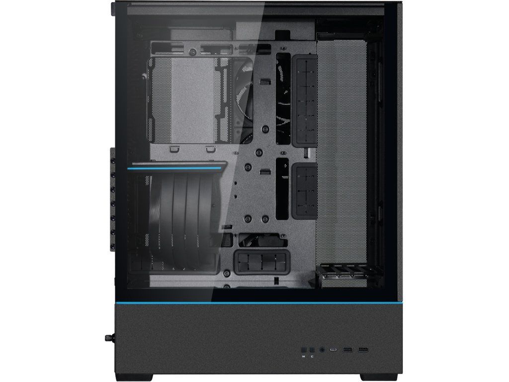 - Možnosti ventilátorů: boční 1: 3× 120 mm, boční 2: 3× 120 mm nebo 2× 140 mm, zadní vnější: 1× 120 mm