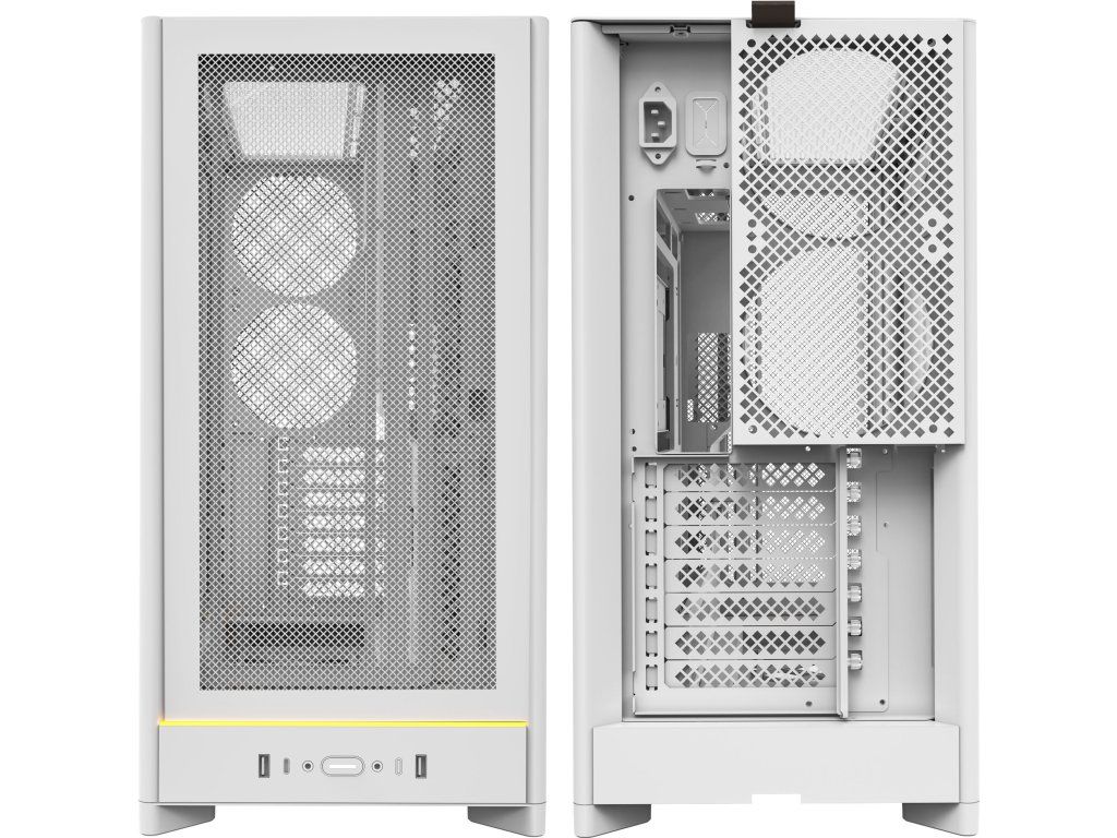 Skříň podporuje klasické ATX sestavy i back-connect základní desky, nabízí dostatek místa pro dlouhé grafické karty, vysoké vzduchové chladiče i rozsáhlejší vodní chlazení. Výbavu doplňuje přední I/O panel s USB-C, dvojicí USB 3.0 a samostatnými 3,5mm audio konektory.
