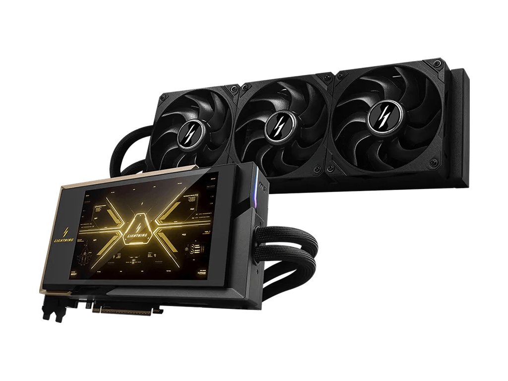 - Vodní chlazení LIGHTNING: Integrovaný full-cover blok s externím 360mm radiátorem pro efektivní odvod tepla i při extrémní zátěži.