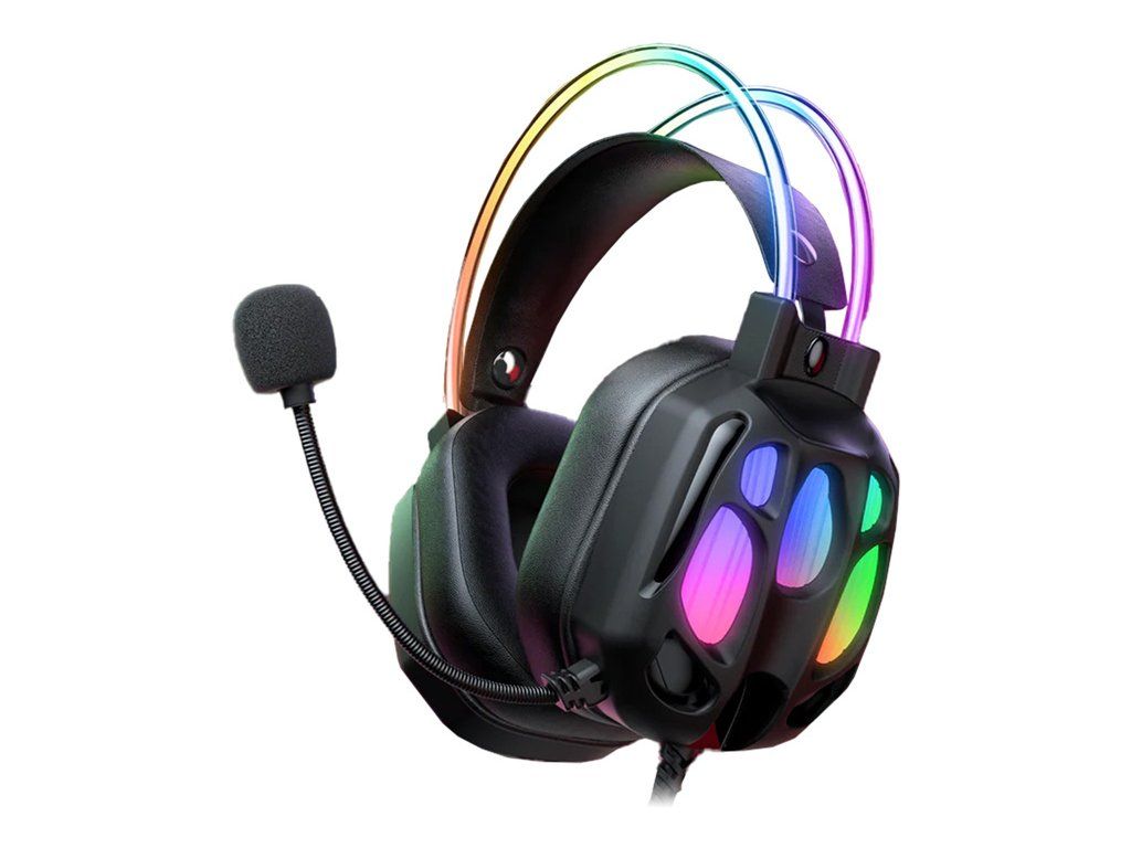 ONIKUMA X89 jsou herní náhlavní sluchátka navržená pro uživatele, kteří chtějí spojit výrazný design, pohodlné nošení a silný zvukový projev. Díky 50mm měničům nabízejí širokou zvukovou scénu, hlubší basy a jasné detaily, které se hodí pro hry, filmy i hudbu. RGB podsvícení navíc zvýrazňuje moderní herní vzhled celé sestavy.