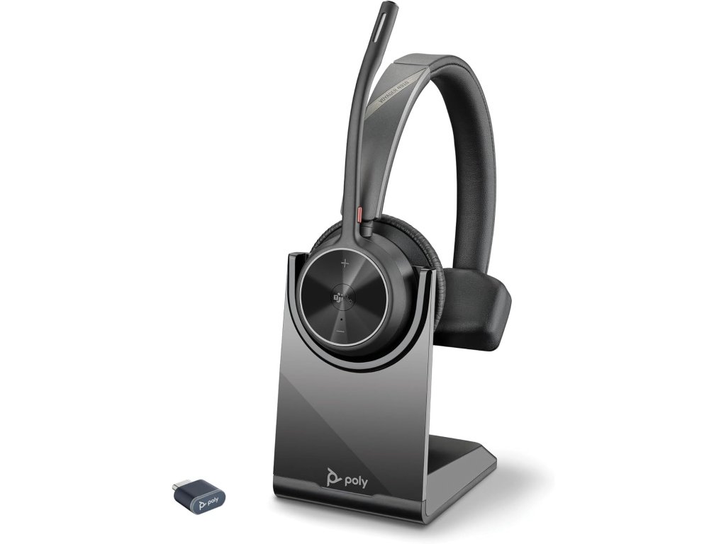 - Obsah balení: Sluchátka Poly Voyager 4310 UC, USB-A adaptér BT700, USB-C na USB-A kabel (1,5 m), ochranný obal, rychlý průvodce