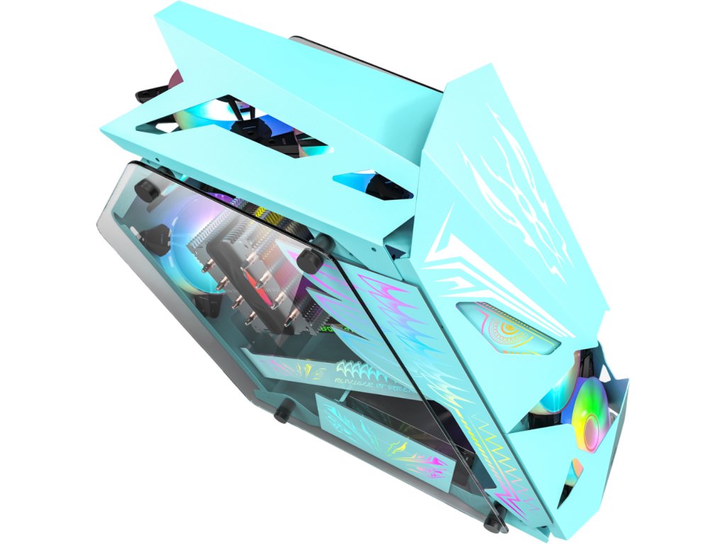 Stylová herní skříň Middle Tower v modrém provedení s bočním panelem z tvrzeného skla, čtyřmi ARGB ventilátory, ARGB-PWM kontrolerem a...