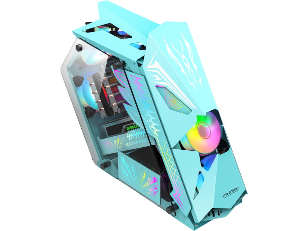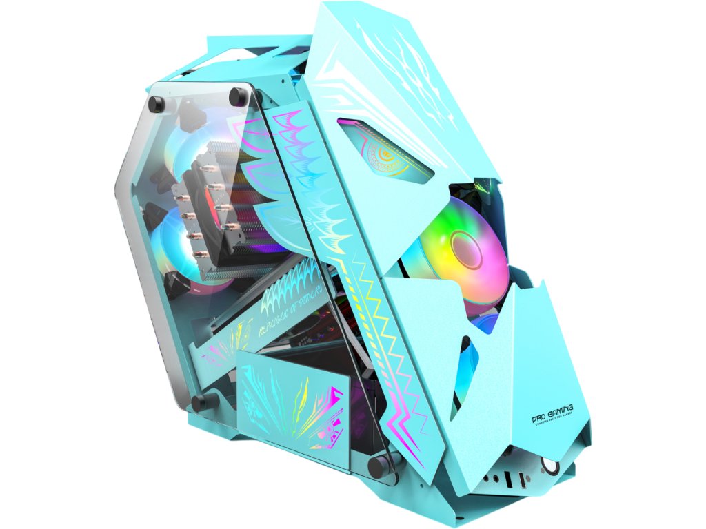 ProGaming Hercule Blue je výkonná herní skříň formátu Mid-Tower, určená pro moderní herní a výkonné PC sestavy. Pevná ocelová konstrukce v kombinaci s bočním panelem z tvrzeného skla nabízí nejen vysokou odolnost, ale také atraktivní pohled na vnitřní komponenty.