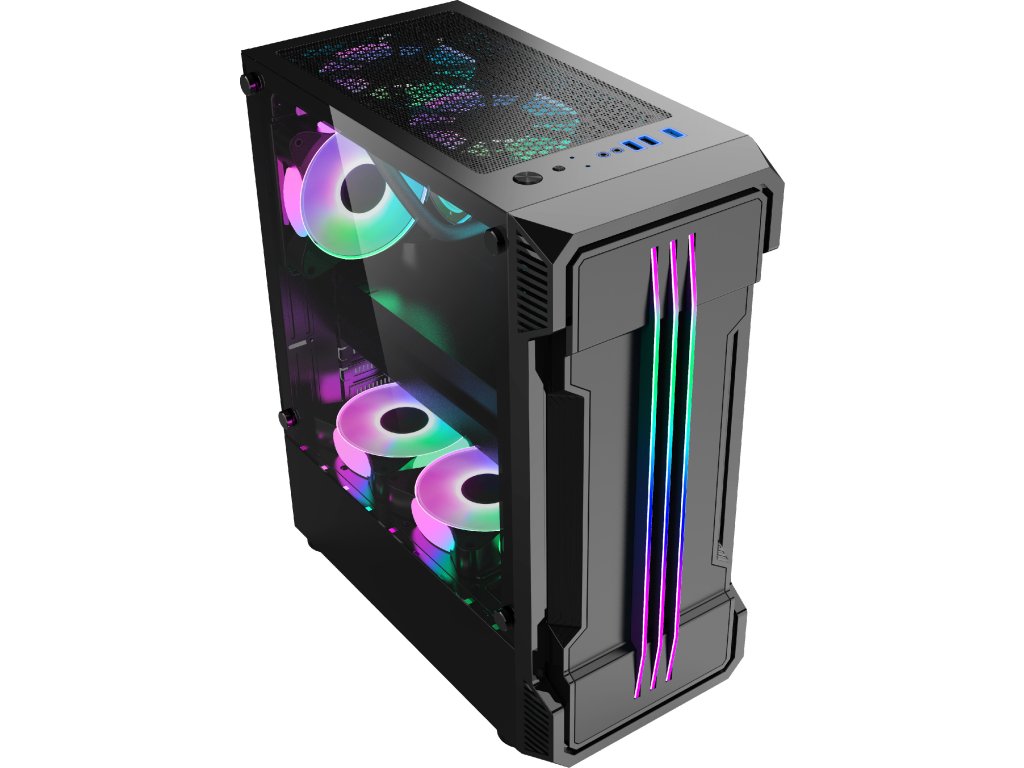 ProGaming Zerg Black je výkonná herní skříň formátu Mid-Tower navržená pro uživatele, kteří hledají kombinaci moderního designu, dobrého chlazení a dostupné ceny. Skříň podporuje základní desky ATX a Micro-ATX a je osazena 3 předinstalovanými ARGB ventilátory v přední části, které zajišťují dostatečný přísun vzduchu a atraktivní RGB efekty.