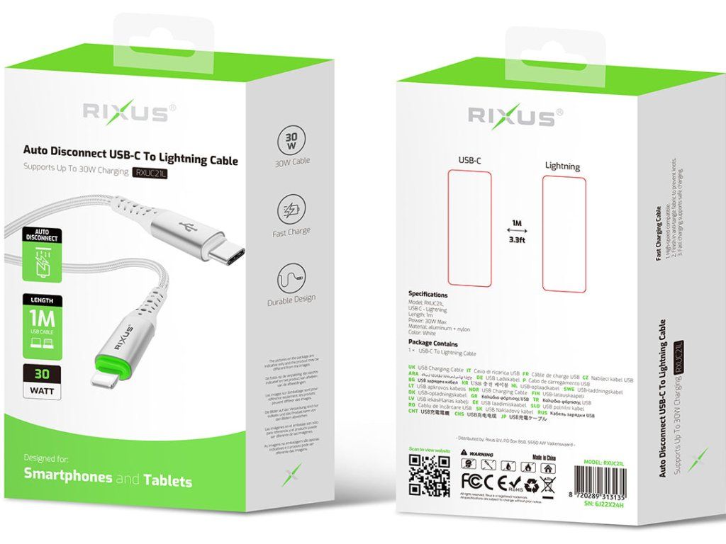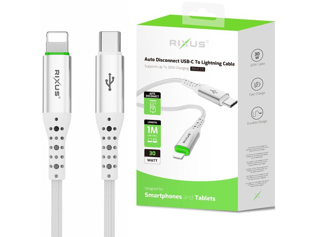 Rixus RXUC21L USB-C to Lightning Cable (1m) - White