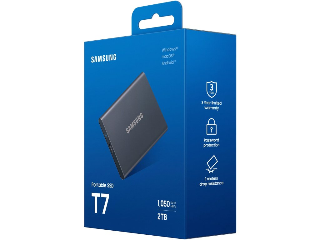 Samsung Portable SSD T7 nabízí vysoký výkon a přenos dat rychlostí až 1 050 MB/s díky rozhraní USB 3.2 Gen 2. Tento externí SSD disk kombinuje elegantní design, odolné kovové tělo a kompaktní velikost, takže se pohodlně vejde do kapsy.