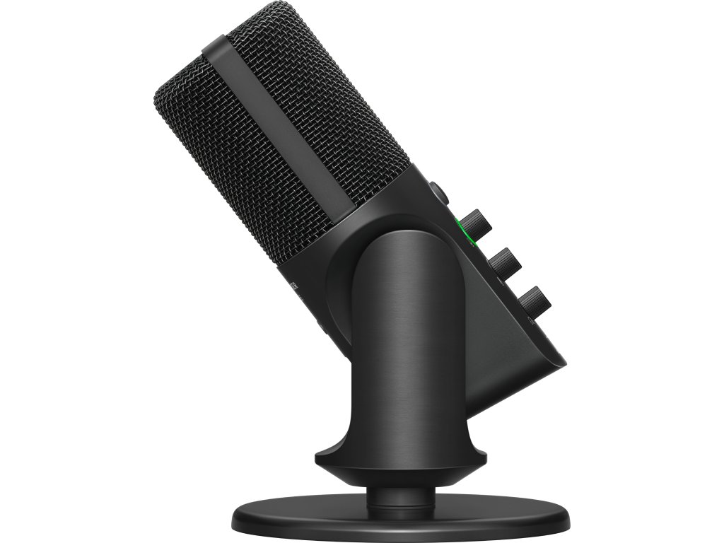 Praktickou výhodou je integrované ovládání přímo na mikrofonu – samostatně lze nastavovat zisk, poměr monitoringu a hlasitost sluchátek. Nechybí tlačítko Mute s LED indikací, 3,5mm sluchátkový výstup ani kovové provedení. V balení je stolní stojan a USB-C kabel.