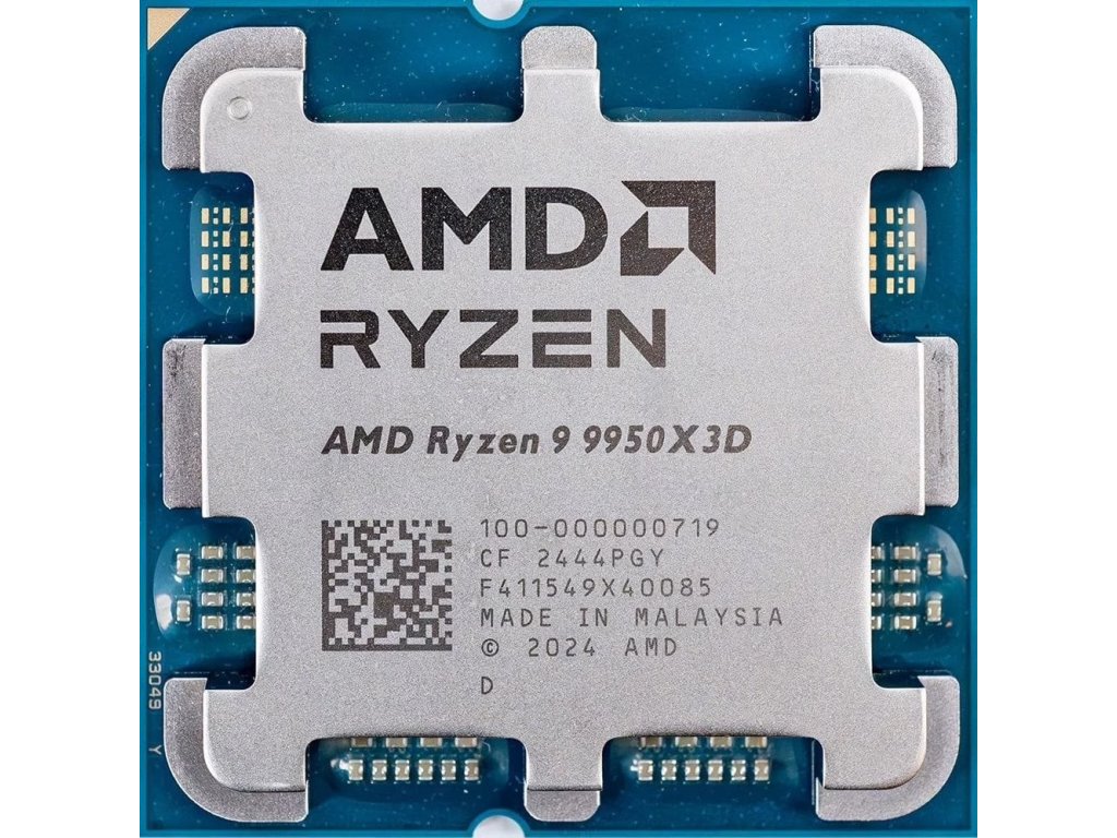 AMD Ryzen 9 9950X3D je vrcholným modelom generácie Zen 5 a predstavuje to najlepšie, čo AMD ponúka pre herné aj profesionálne zostavy. Disponuje 16 jadrami a 32 vláknami, základnou frekvenciou 4.3 GHz a maximálnym boostom až 5.7 GHz. Vďaka technológii 3D V-Cache s celkovou kapacitou až 192 MB poskytuje špičkový výkon v moderných hrách aj náročných výpočtových úlohách.